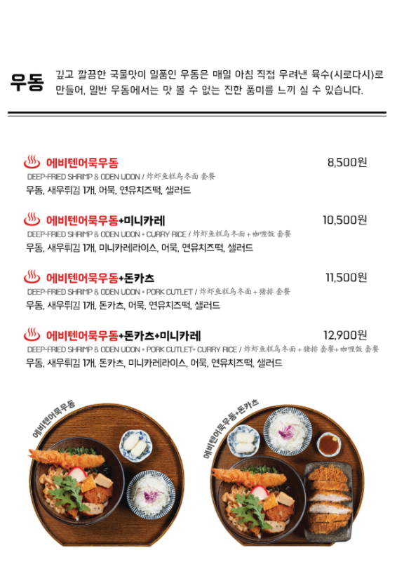 - 가게에서 먹을 때와 포장에 약간 차이가 있는지, 내가 본 메뉴판에는 "미니 우동"이 포함되어있다고 하는데, 그냥 "우동 국물"만 있었다. 포장이라 아마 우동은 제외되는 것 같다.