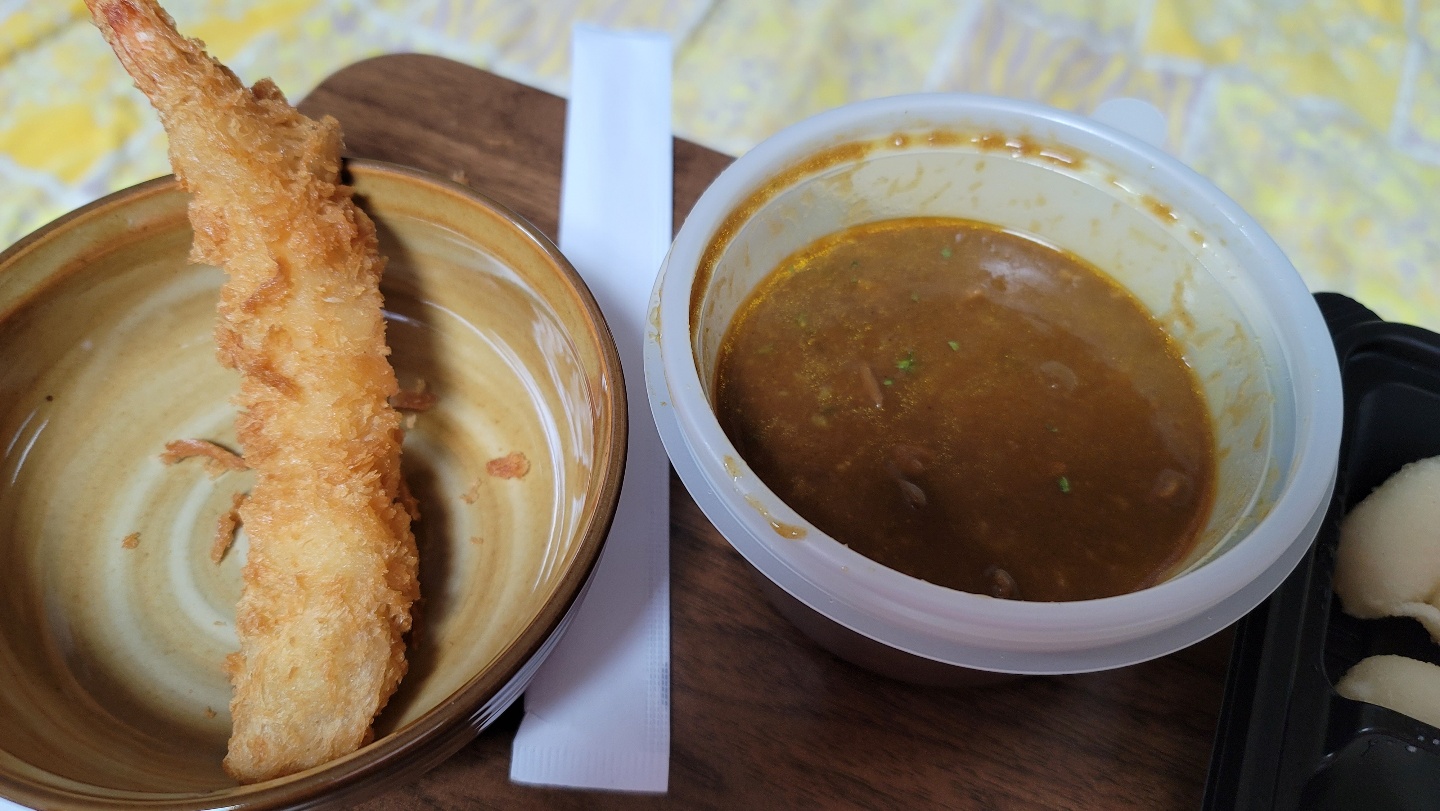 - 나는 머쉬룸포크카레와 에비텐 세트를 먹었는데, 카레가 정말 맛있었다. 약간 인도 카레 느낌!😍 에비텐도 통통하니 맛있었다.