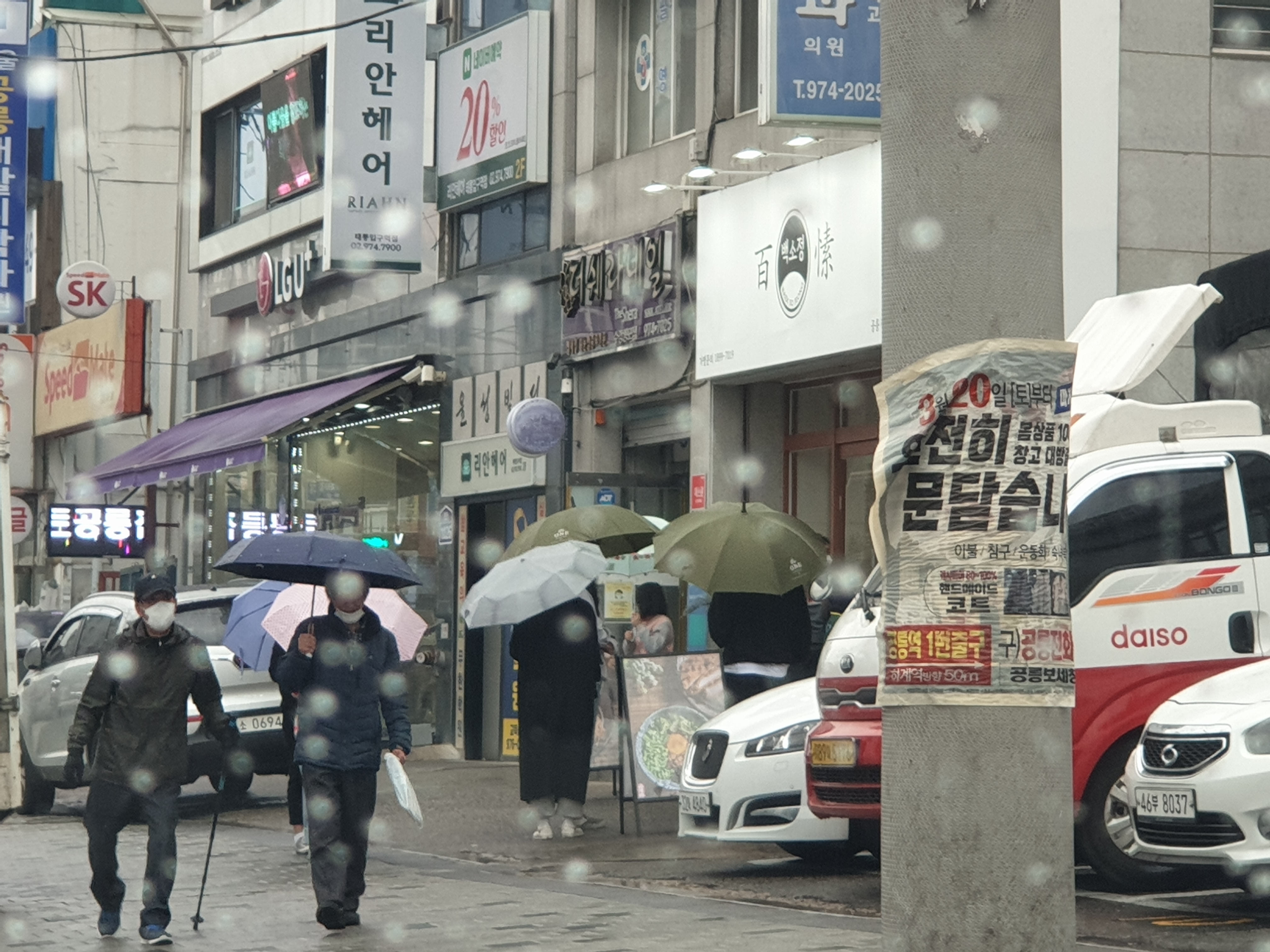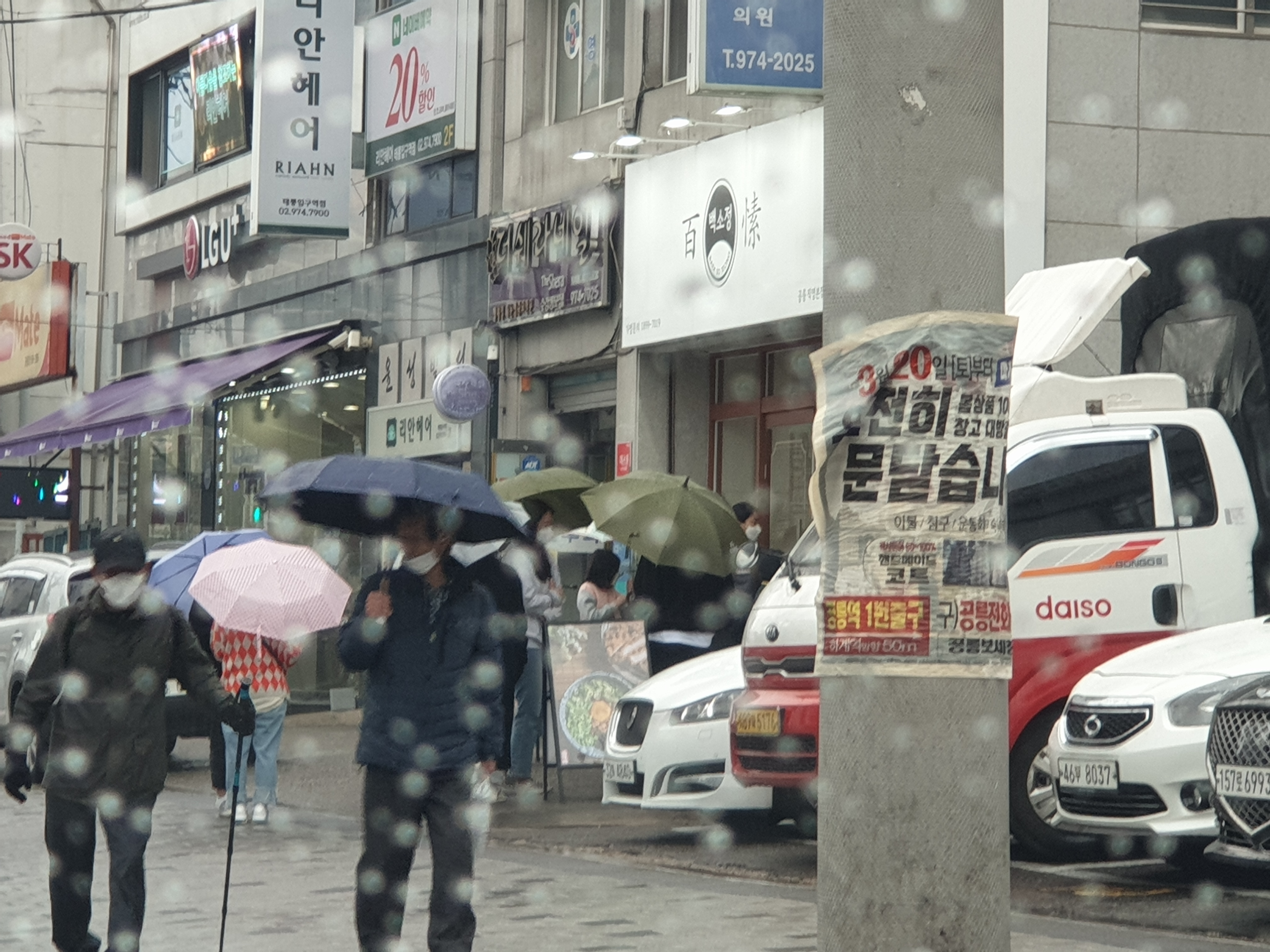 - 비 오는 날 + 인기 많은 집이라 그런지 밖까지 줄이 서있었다. 나는 전화 포장 주문을 했기에 금방 음식을 찾아 나왔다.