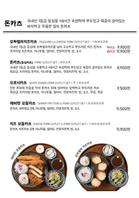 - 결국, 머쉬룸포크카레 + 에비텐 세트와 치즈 모둠카츠 (총 2가지)를 시켰다.