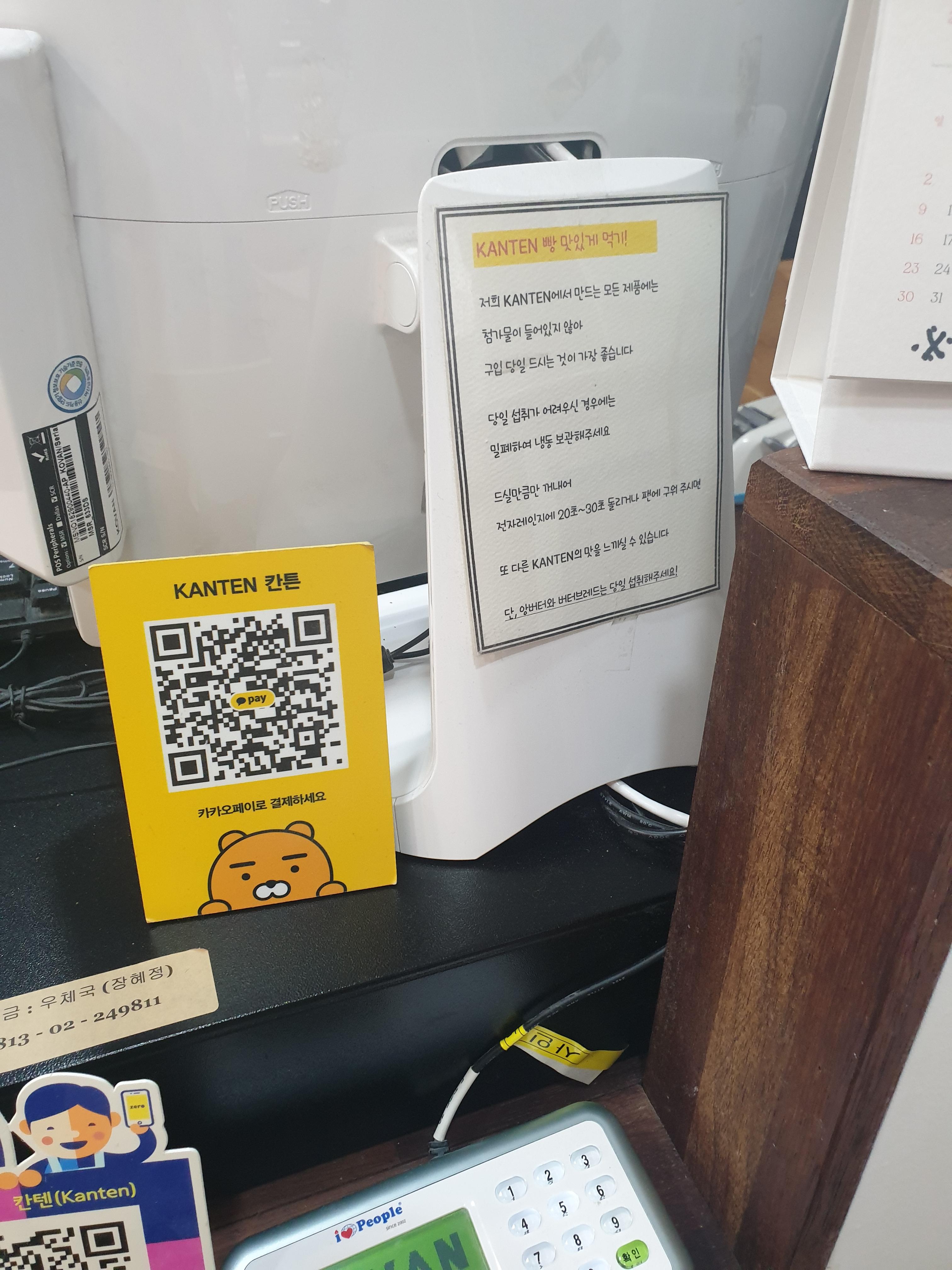※ POS 앞에도 써있지만, 칸텐은 좋은 재료(유기농 밀가루, 고매 마르켄 버터)를 사용하는 걸로 유명하다. 사용하는 밀가루 등 재료가 오픈 주방 앞에 전시되어있다. 모든 제품에 첨가물이 들어있지 않아 구입 당일 먹는 걸 권장하며, 어려운 경우에는 밀폐하여 냉동 보관하라고 한다. (단, 앙버터와 버터 브레드는 당일 섭취하라고 적혀있으니 참고해주시길🙏)