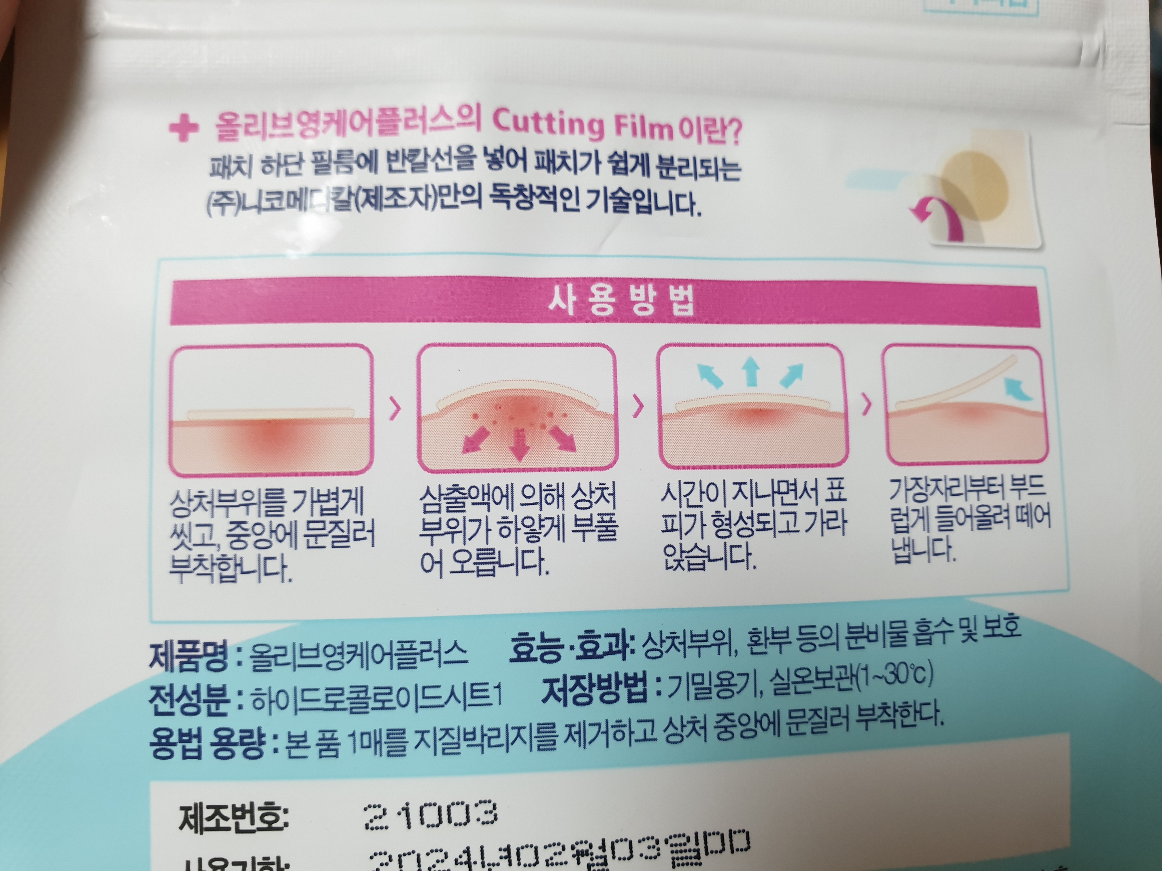 ⑤ 패치 하단 필름에 반칼선을 넣어 패치가 쉽게 분리