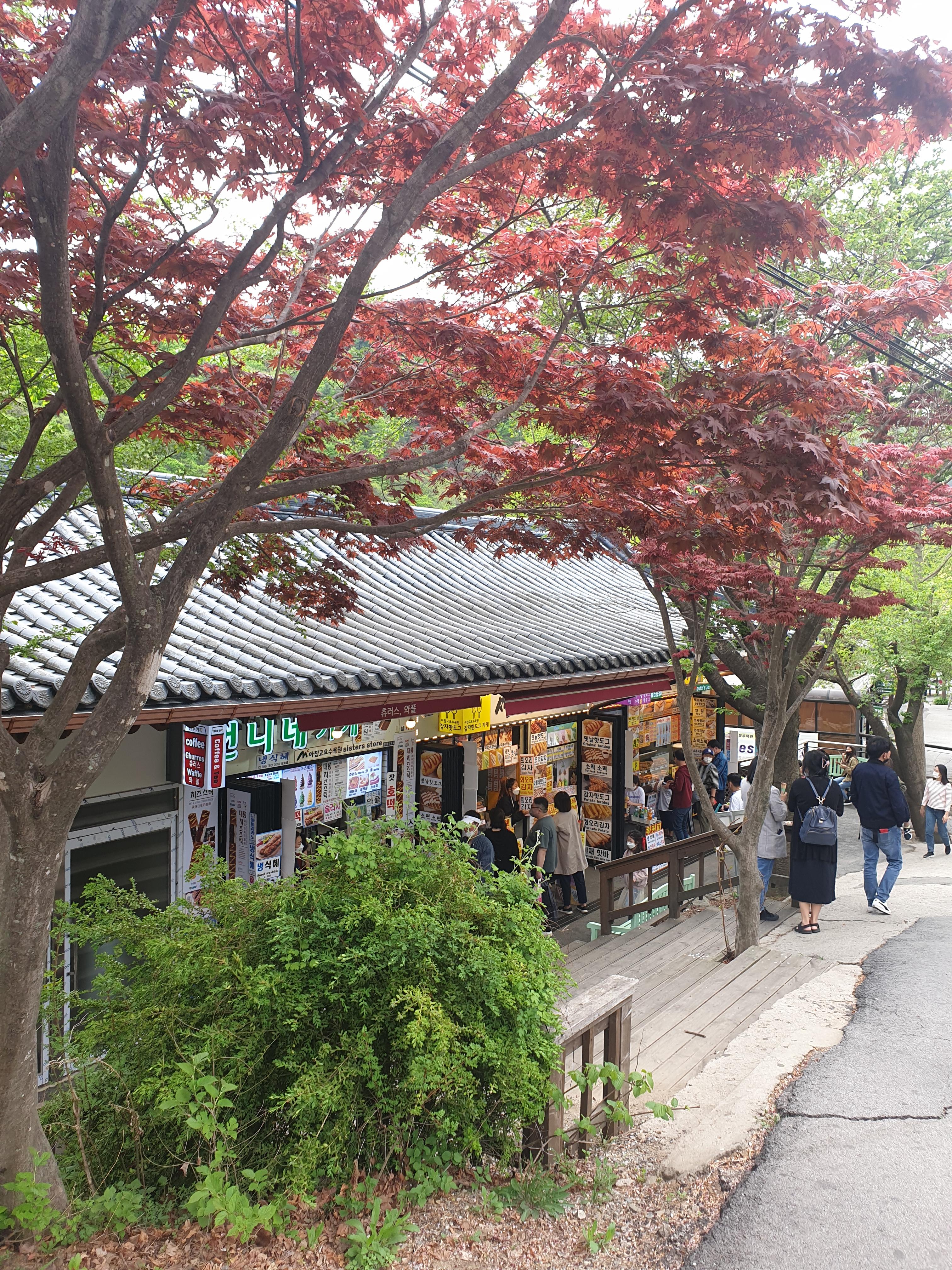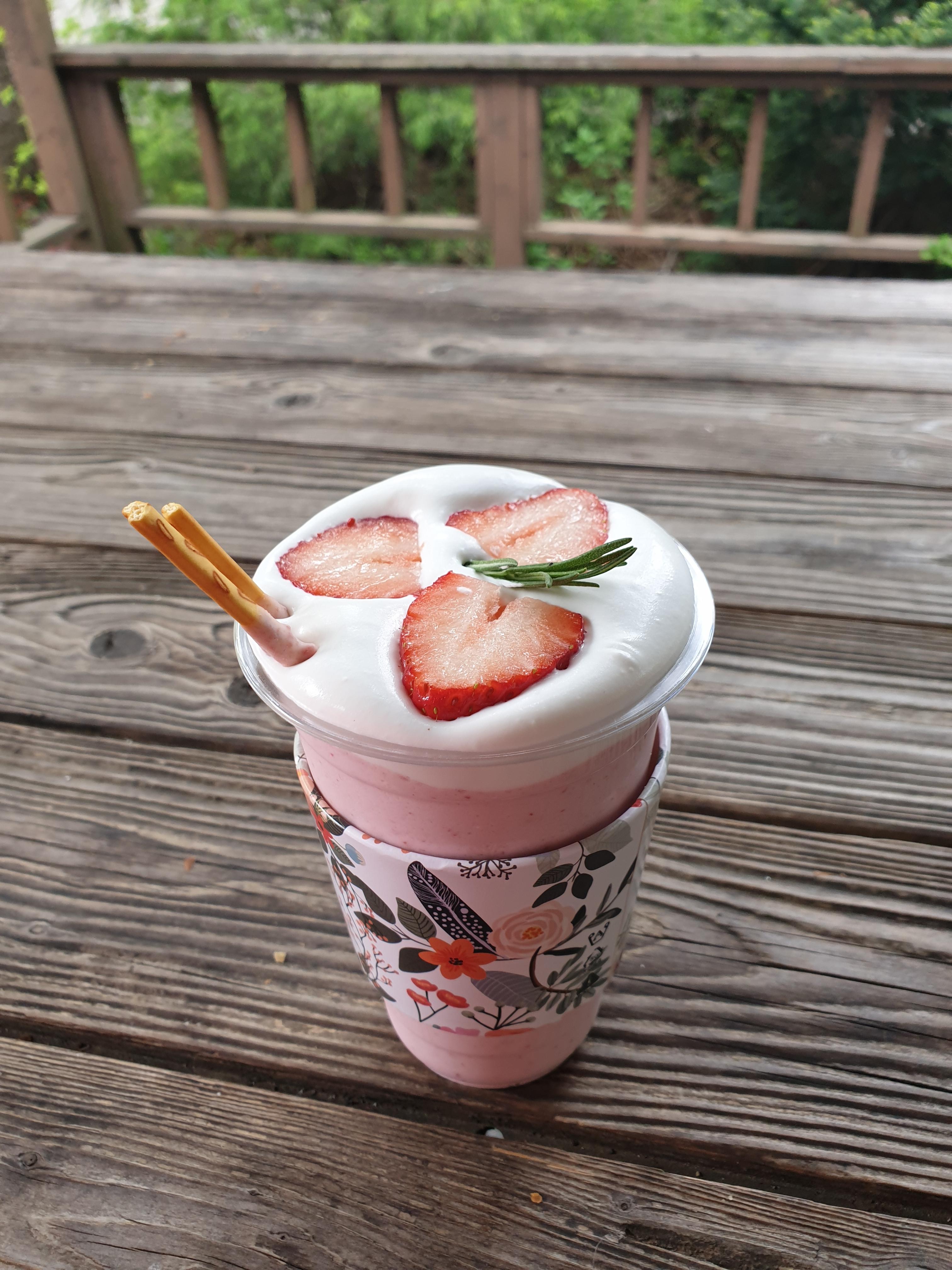 날씨가 좋았다면, 그리고 내 핸드폰 성능이 조금 더 좋았다면 더 예쁘게 담을 수 있었을 텐데 아쉬웠지만 그래도 정말 좋았다. 잠시 목을 축이기 위해 "good morning (굿모닝) 카페"에서 음료 한 잔을 사서 사람이 없는 야외 한 켠에서 먹었다. 먹었던 음료는 "생딸기 쉐이크"🍓! 나는 물을 먹었고, 친구가 주로 이 음료를 먹었는데 달달하니 너무 맛있다고 하였다. 당 충전 제대로 되는 느낌!