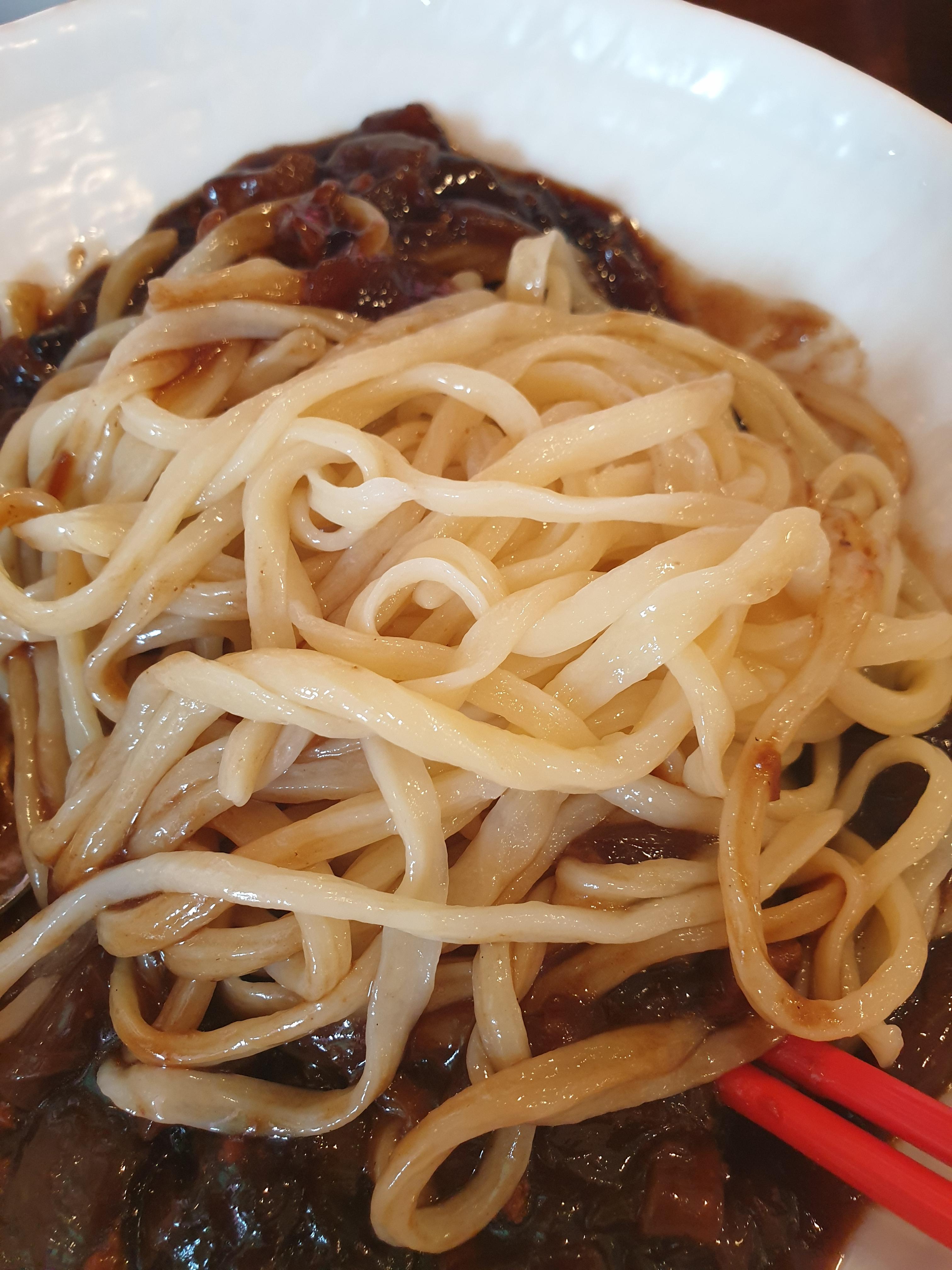 주문한 지 얼마 되지 않아 나온 나의 짜장면! 정말 1년 넘게 안 먹었는데 오랜만에 이렇게 보니 어색했다😁. 면은 수타면이라서 굵기가 일정하지 않았는데 쫀득하고 정말 맛있었다. 그냥 일반면이랑 비교하면 확실히 달랐다. 짜장면은 나는 자극적이지 않아서 좋았다. 일반 짜장면보다 덜 자극적이라 느꼈는데 내 친구의 의견으로는 "옛날 짜장면" 같은 느낌이라 한다. 덜 달고, 덜 자극적이라고...대신 좀 기름진 느낌이라고 하였다. 나는 1년 넘게 만에 먹는 짜장면이라 너무 맛있었고, 내 친구도 괜찮았다고 하였다.