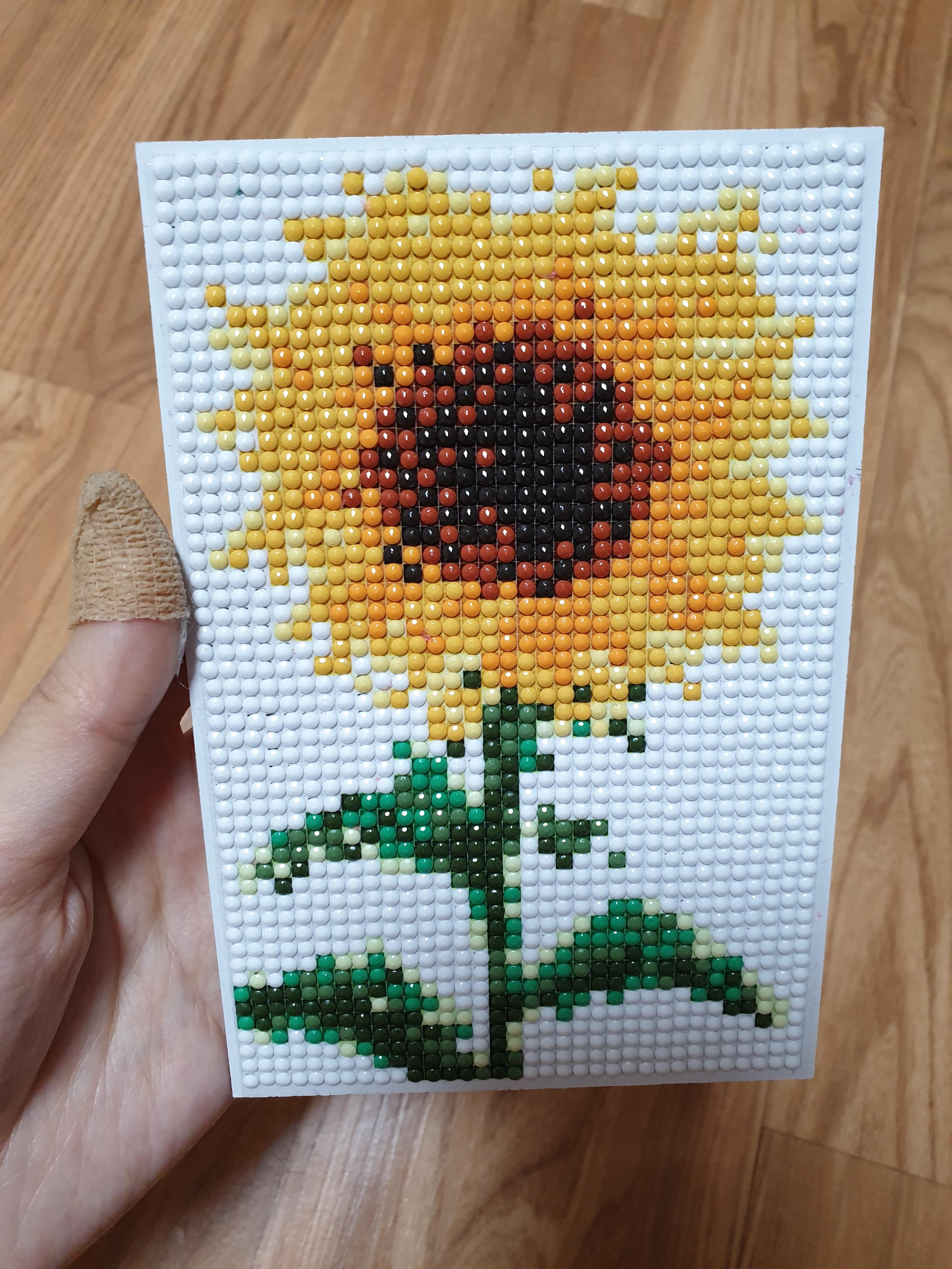 - 다이소 제품이라 그런지 아니면 원래 그런지 모르지만, 생각보다 반짝임이 화려하진 않았다. 하지만 다른 색과 비교했을 때는 흰색 비즈가 가장 반짝여서 해바라기는 빛을 받으면 반짝반짝했다✨.