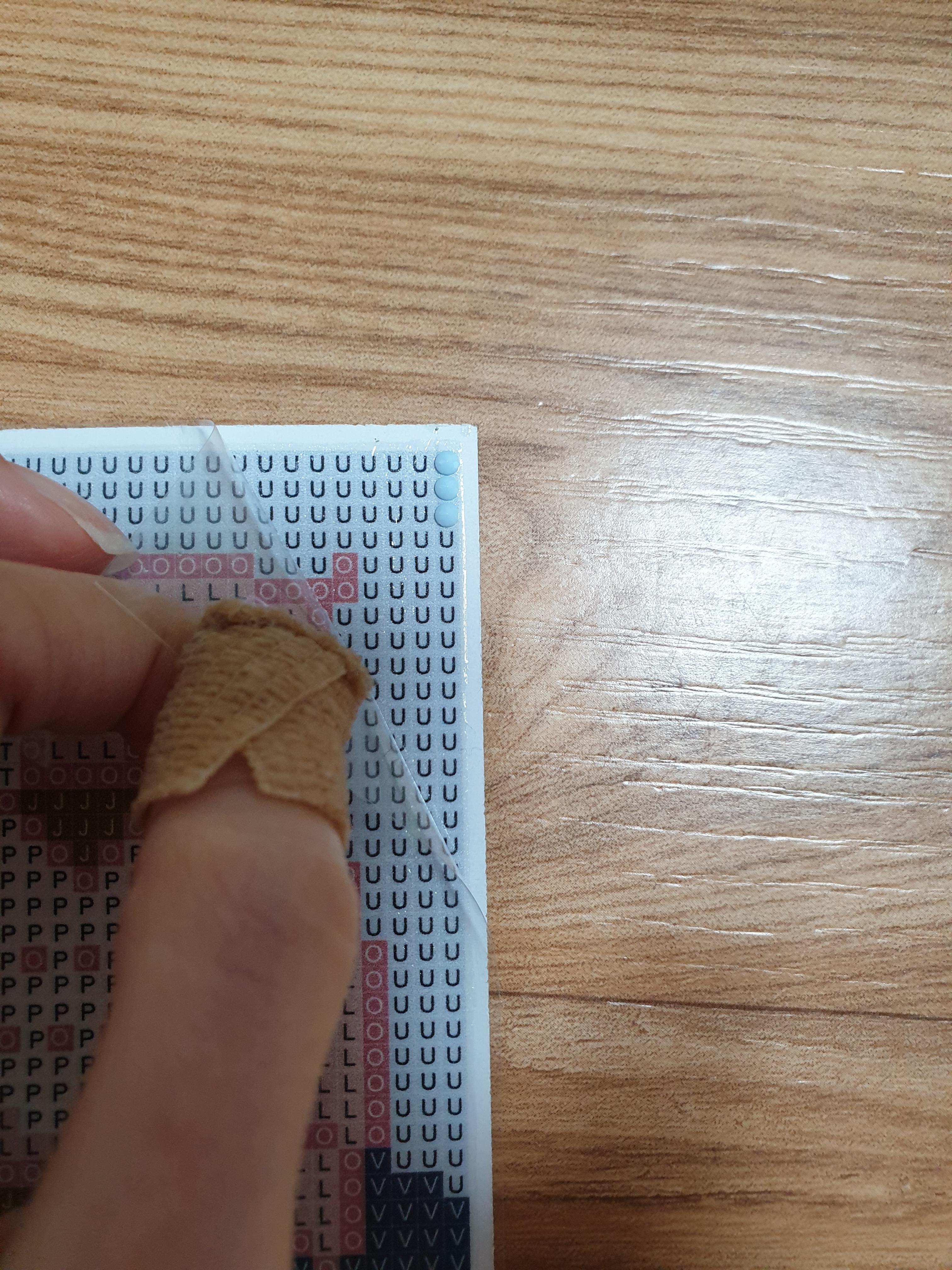 ⑤ 작업할 부분의 보호필름만 조금씩 떼어가며 번호에 맞게 비즈를 붙입니다.