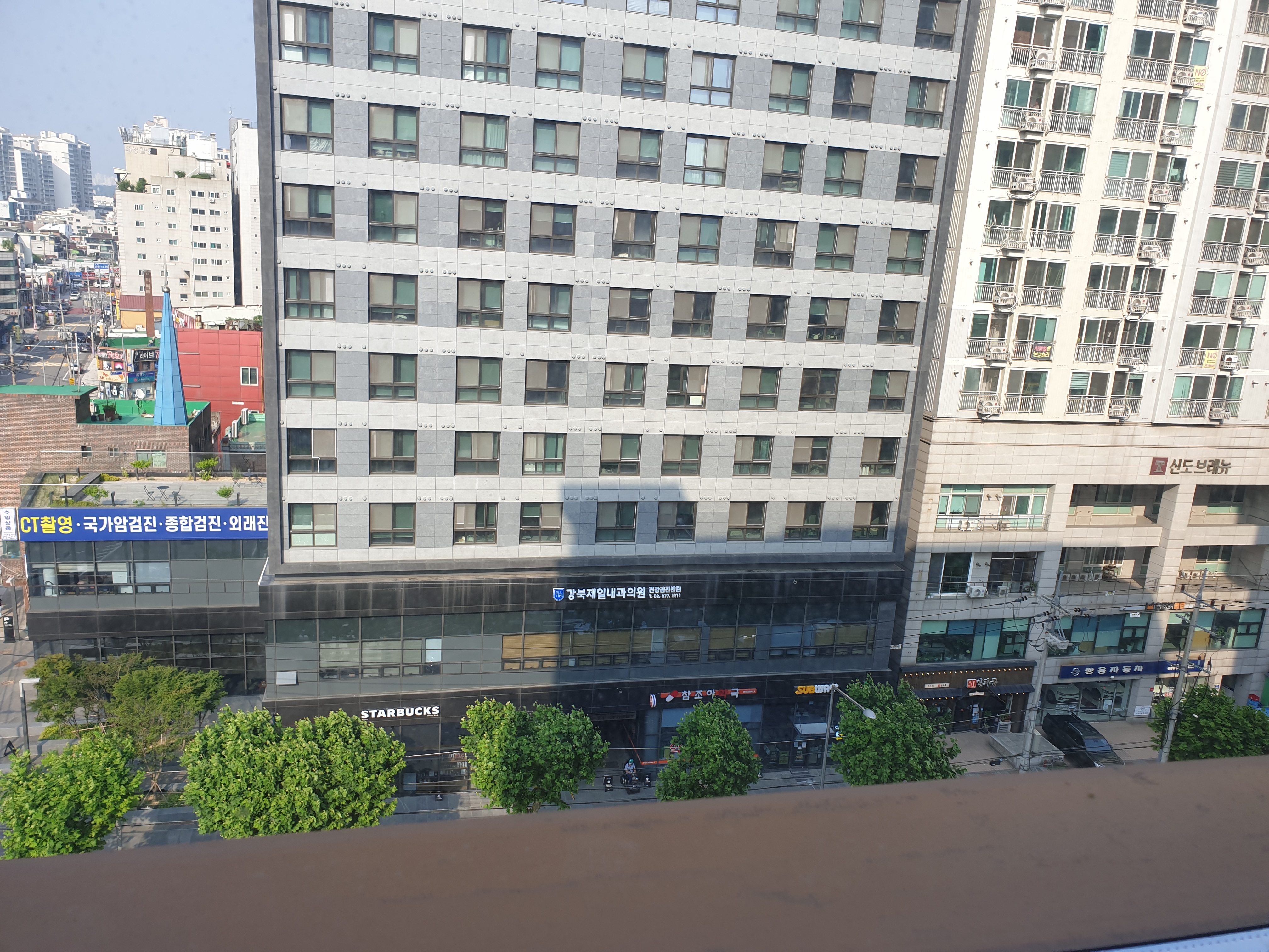 나는 5관이라 5층에 올라갔다. 5층에서 본 창문 풍경! 건물 입구에서 QR코드 체크인을 하고 영화관에 들어가기 전 체온을 재고 이렇게 2중으로 확인 후 극장에 들어갔다.