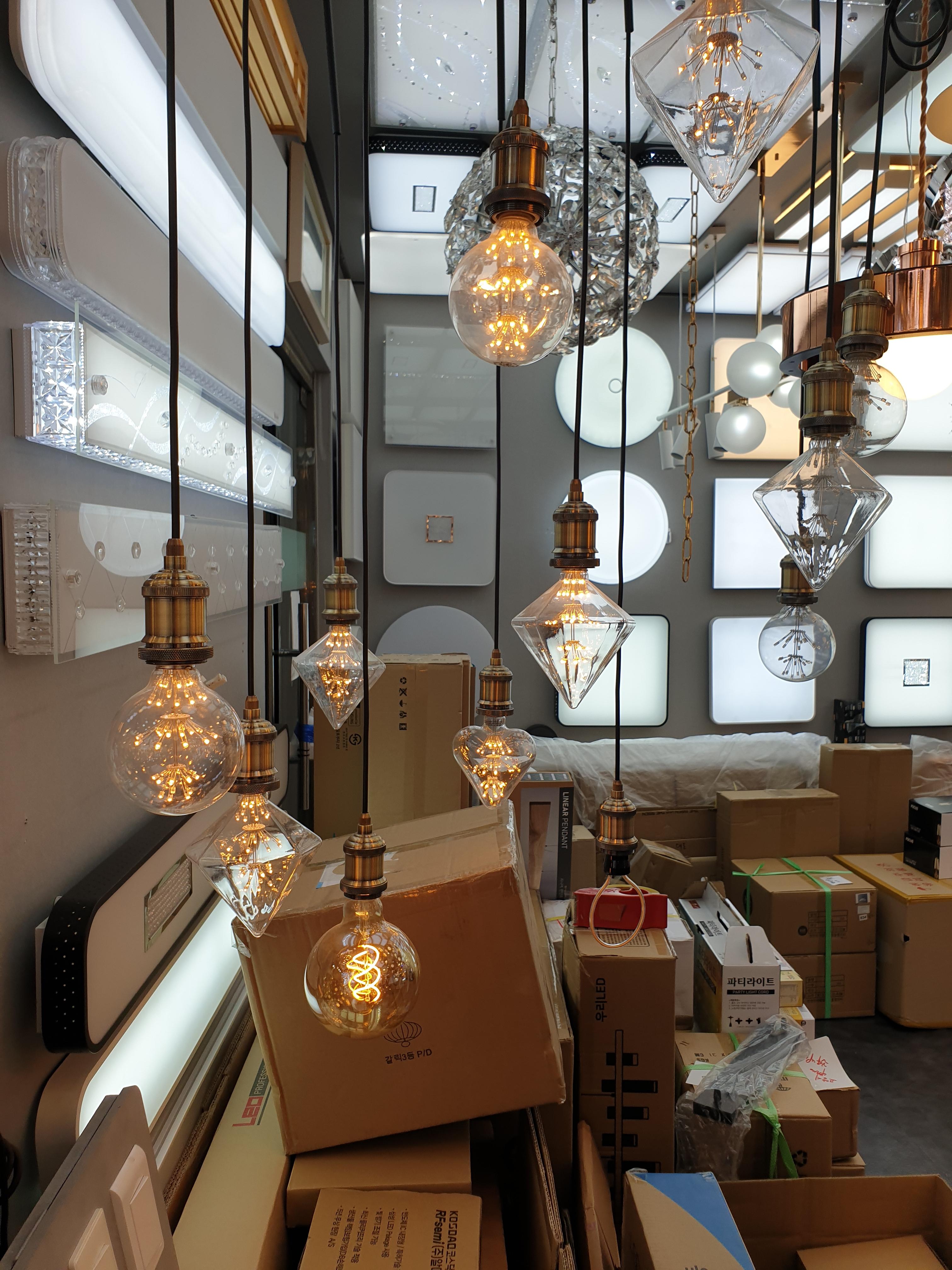 2~3층으로 이뤄져 있고, 주로 물건은 2층에 있고 조금 큰 조명은 3층 작은 공간에 있다. 우리는 층고가 높은 곳에 달 조명을 찾고 있어서 끈으로 아래로 툭 떨어지는 형태의 조명을 찾고 있었다. 여러 종류가 있었고, 조명에 대해서는 사실 그렇게 많이 고민하지 않고 가서 그냥 구경만 열심히 하고 왔다.