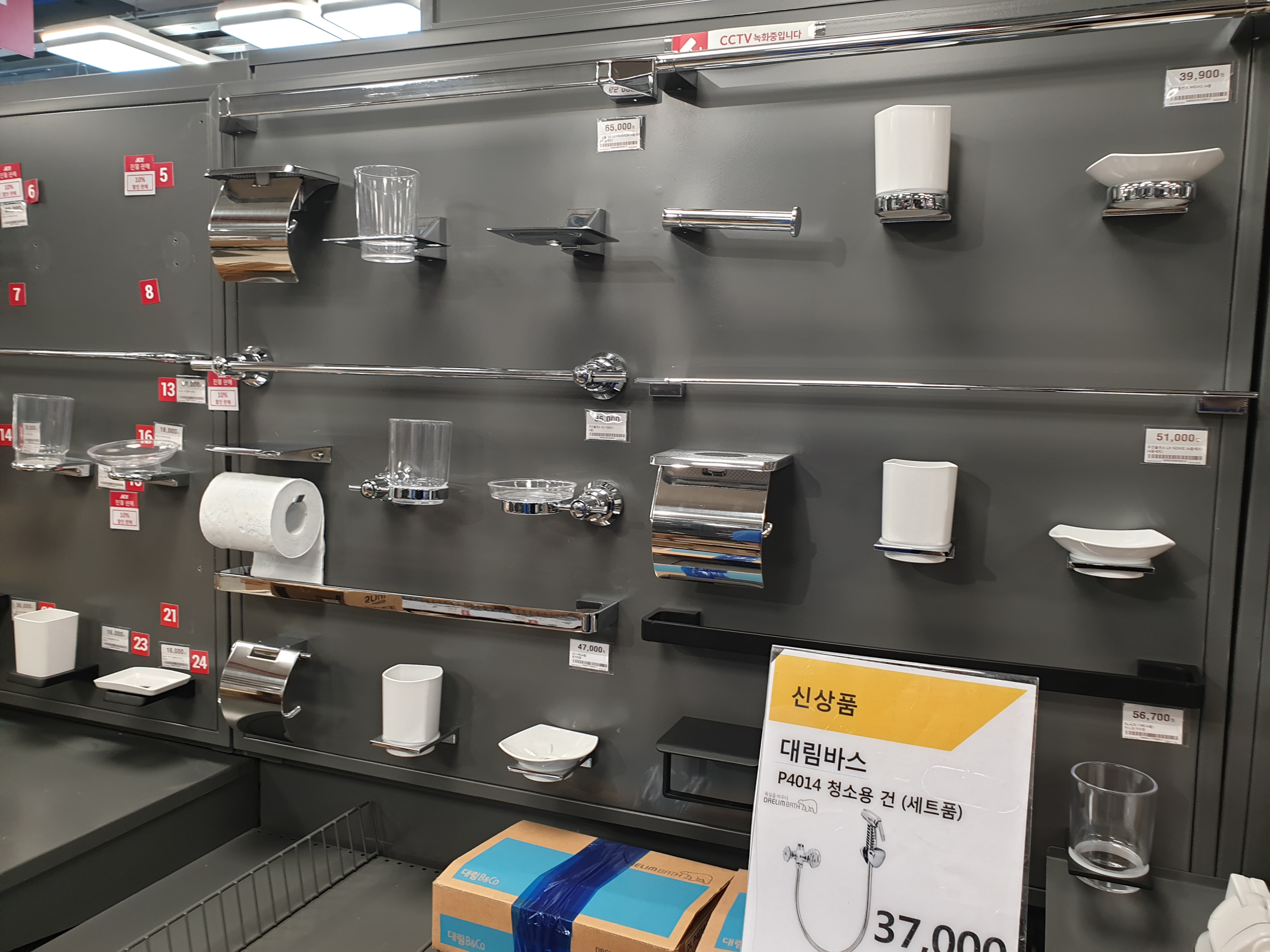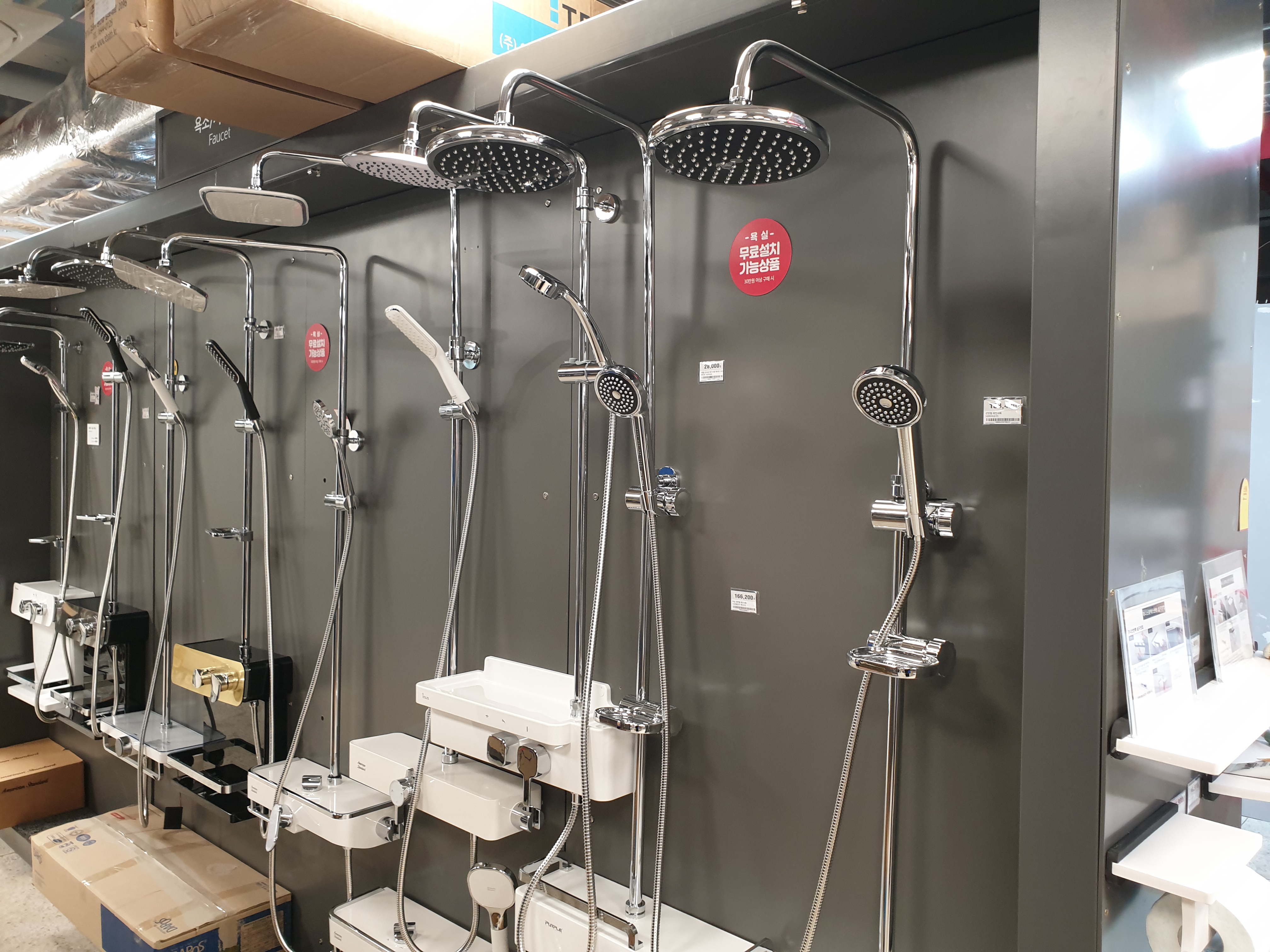 3가지 정도 미니 쇼룸(욕실)이 있다. 그 주변으로 다양한 욕실 제품이 있다. 빨간색 변기도 있었는데 신기했다. 저건 어디서 쓰는 걸까...?
