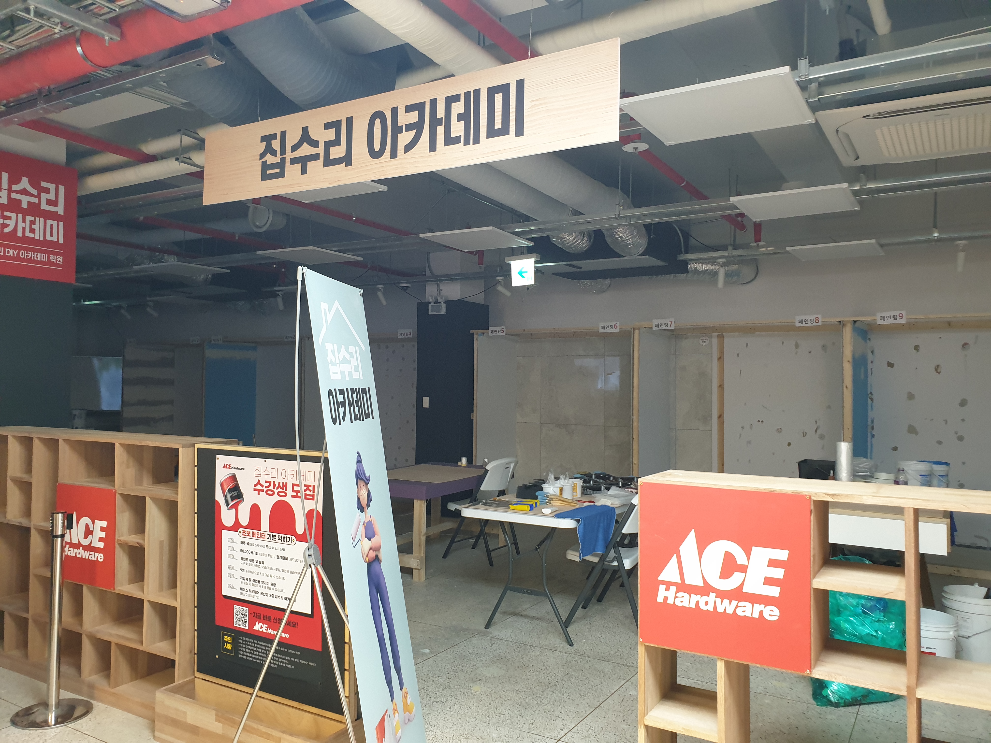 이런 아카데미 공간도 있었다. 뒤에 임시 벽들이 있는 걸 보면, 직접 페인트를 칠해보는 등 집수리, 셀프 인테리어 방법을 알려주는 공간인 것 같았다. 좋구만! (목/토마다 수업이 있다고 하네요~ 사진 참고해주세요!)