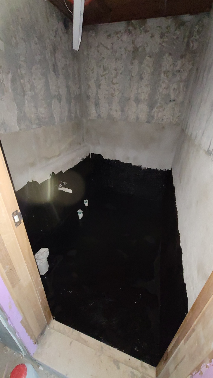 내가 이 사진보다 눈을 비비며 다시 봤는데, 너무 블랙홀 같은 거다. 뭔가 바닥이 없는 것 같은...!😆 화장실에 방수 처리를 했다고 한다. 덕분에 모든 빛을 흡수하는 검은색처럼 매우 시꺼메진 화장실 바닥.