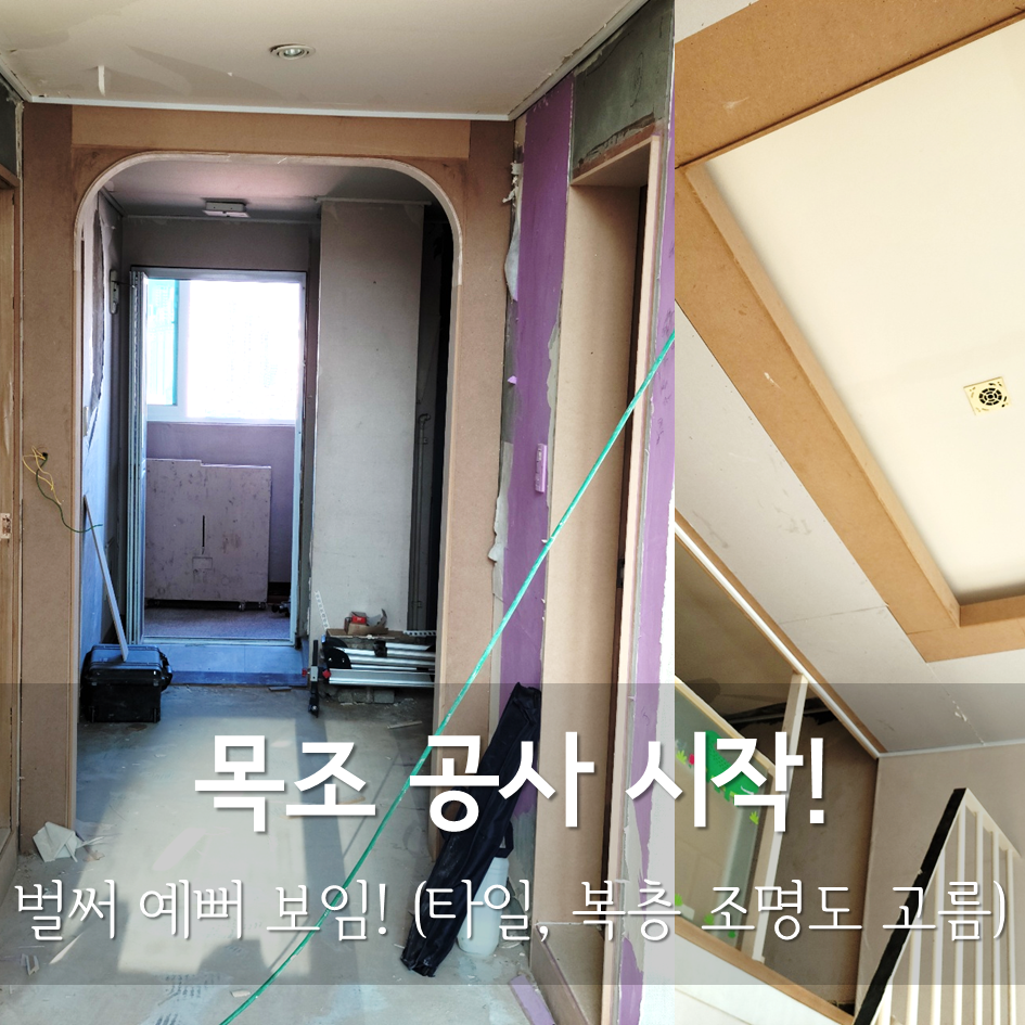 철거가 끝나고 또 바쁘게 공사가 시작되었다. 나무를 올리고, 구조에 맞게 자르고, 한편으로는 타일 전체 확정하고, 복층 안방 조명도 사고...! (물론 내가 아니라 남자친구가 결정하고 있다🤣) 남자친구가 계속 나한테 상황을 보고해주고 있어서 이렇게 글을 쓰고 있다. 하하. 고마운 남자친구...!