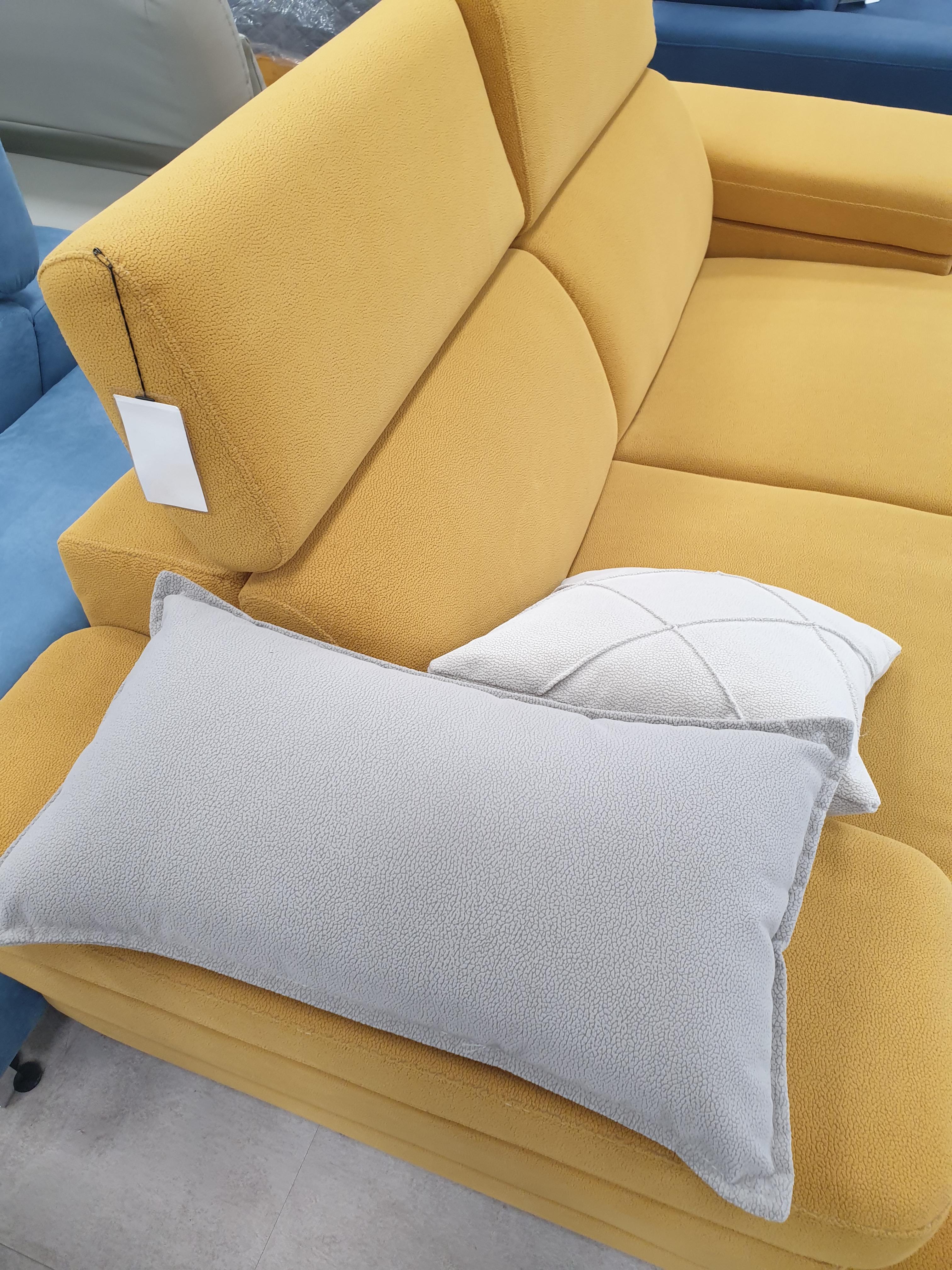 옐로우 머스타드, 비비드 블루그린, 누드베이지 총 3가지 색상을 인터넷에서 보고 갔었는데, 쇼룸에 여쭤보니 여기에 그레이 색상이 더 있다고 한다 (아래 왼쪽 사진을 보면, 작은 쿠션이 누드 베이지, 긴 쿠션이 그레이 색상!).