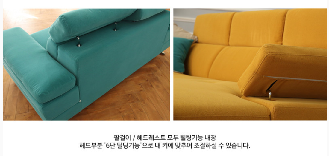 팔걸이, 헤드레스트 모두 틸팅이 가능했고, 적당히 푹신하고 편안했다. 다만, 오염에 강하긴 하지만 색상이 연하기 때문에 아예 오염이 안되거나 그러진 않는 것 같았다. 오랫동안 여러 사람이 앉아서 더 그렇겠지만, 쇼룸에 있는 옐로우 소파는 약간 오염이 되어있었다.