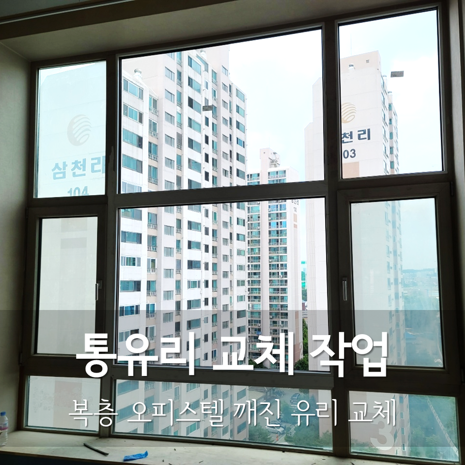 타일 작업, 전기 작업도 끝나고 이제 공사도 1/3이 지나가고 있다. 복층 오피스텔로 통유리가 있는데 모서리 부분이 조금 깨져있었다. 원래는 이걸 교체를 안하기로 했었다. 왜냐하면 유리가 두껍고 크고 9층이라 작업도 힘들고 가격도 비싸고 여러 측면에서 업체에서 말렸기 때문이다. 그런데 인테리어 하고 있는 업체에서 좋은 제안도 주시고 작업도 하실 수 있다고 하여 창문 교체 작업을 하기로 했다.