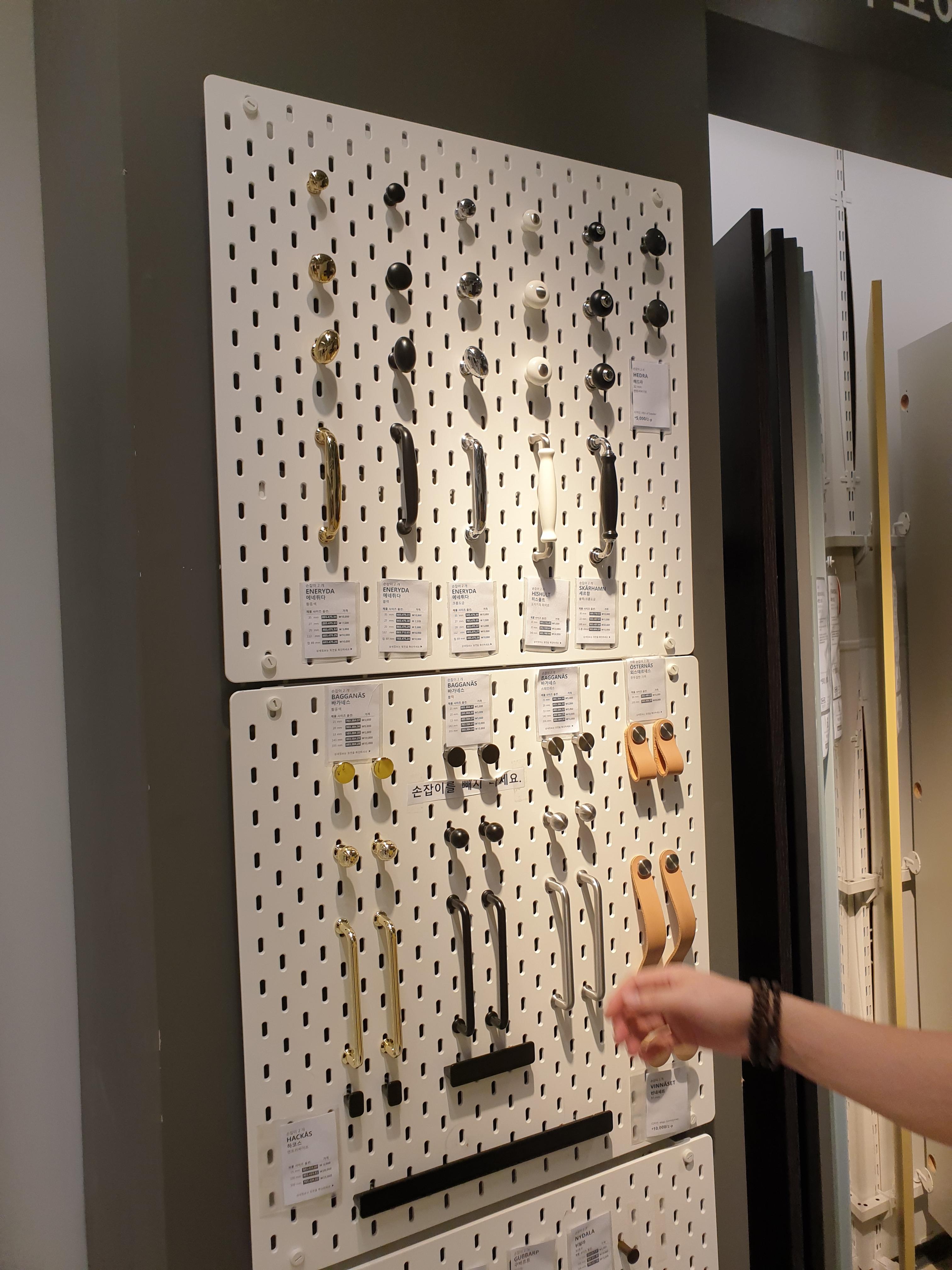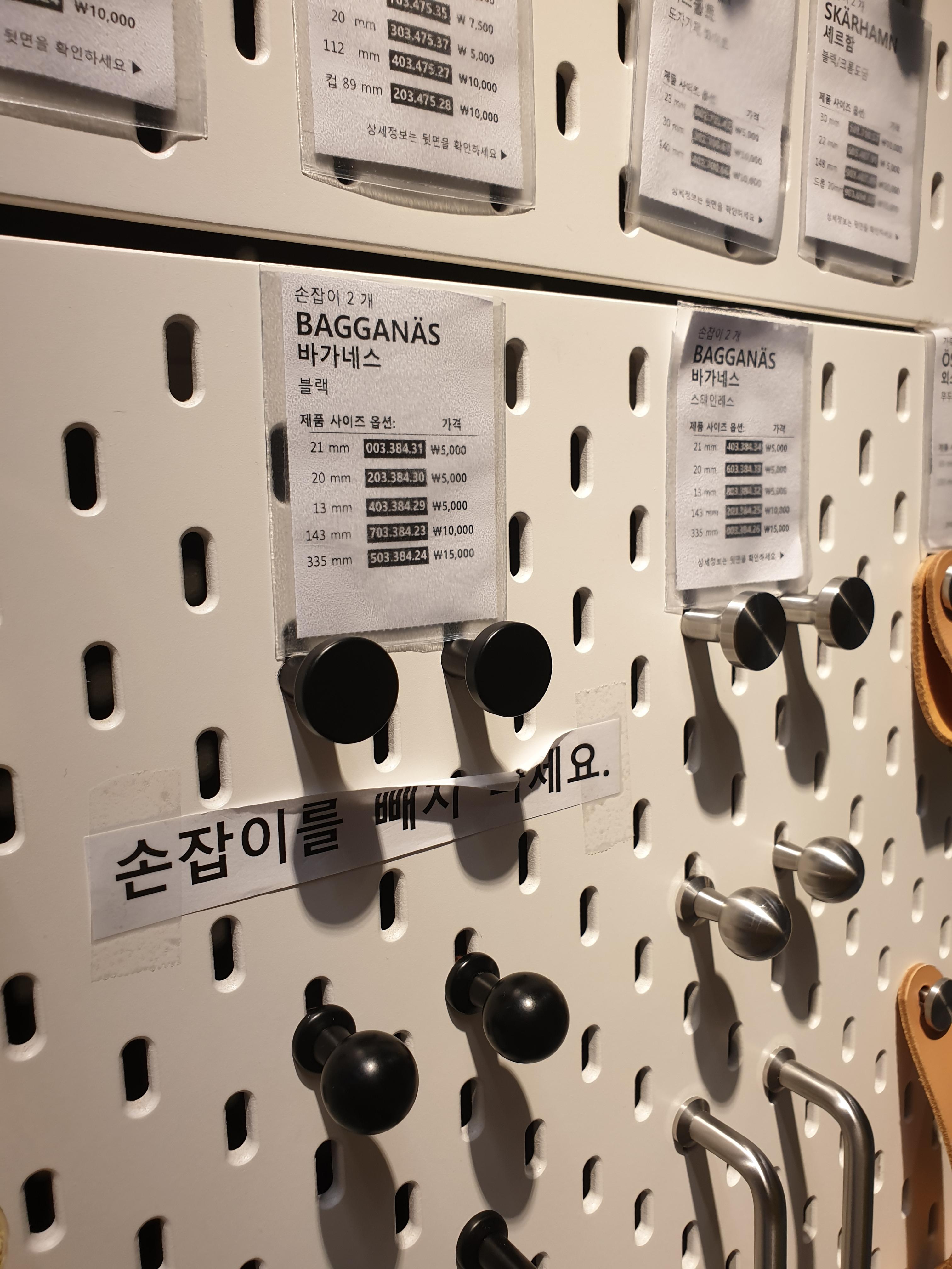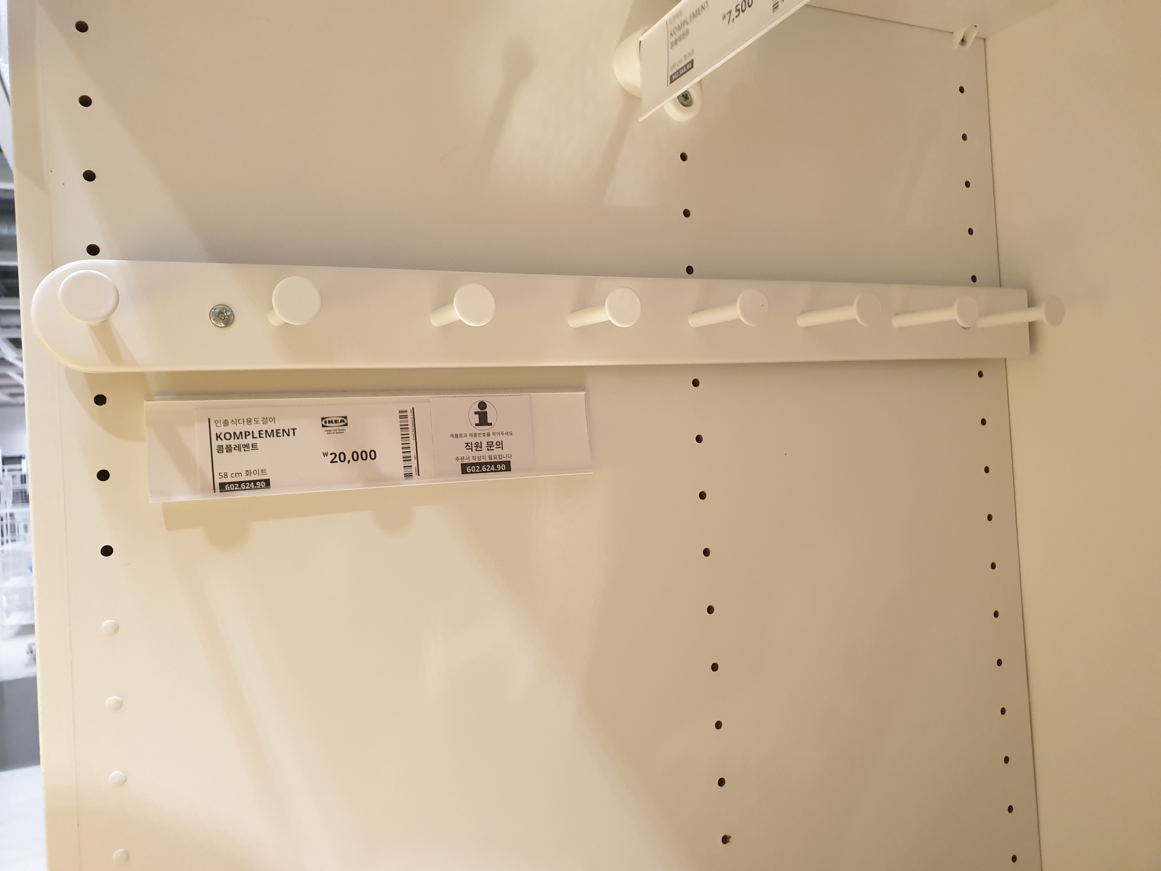 콤플레멘트(KOMPLEMENT) 2만원 장롱에 설치할 다용도 걸이도 확인하고, 손잡이도 골랐다. 손잡이는 바가네스(BAGGANAS) 블랙으로 결정! 다용도 걸이와 손잡이는 주문서를 작성해서 계산 후 별도로 수령해야 한다. 왜 그렇게 운영하는지는 모르겠지만 아무튼 그러하다.
