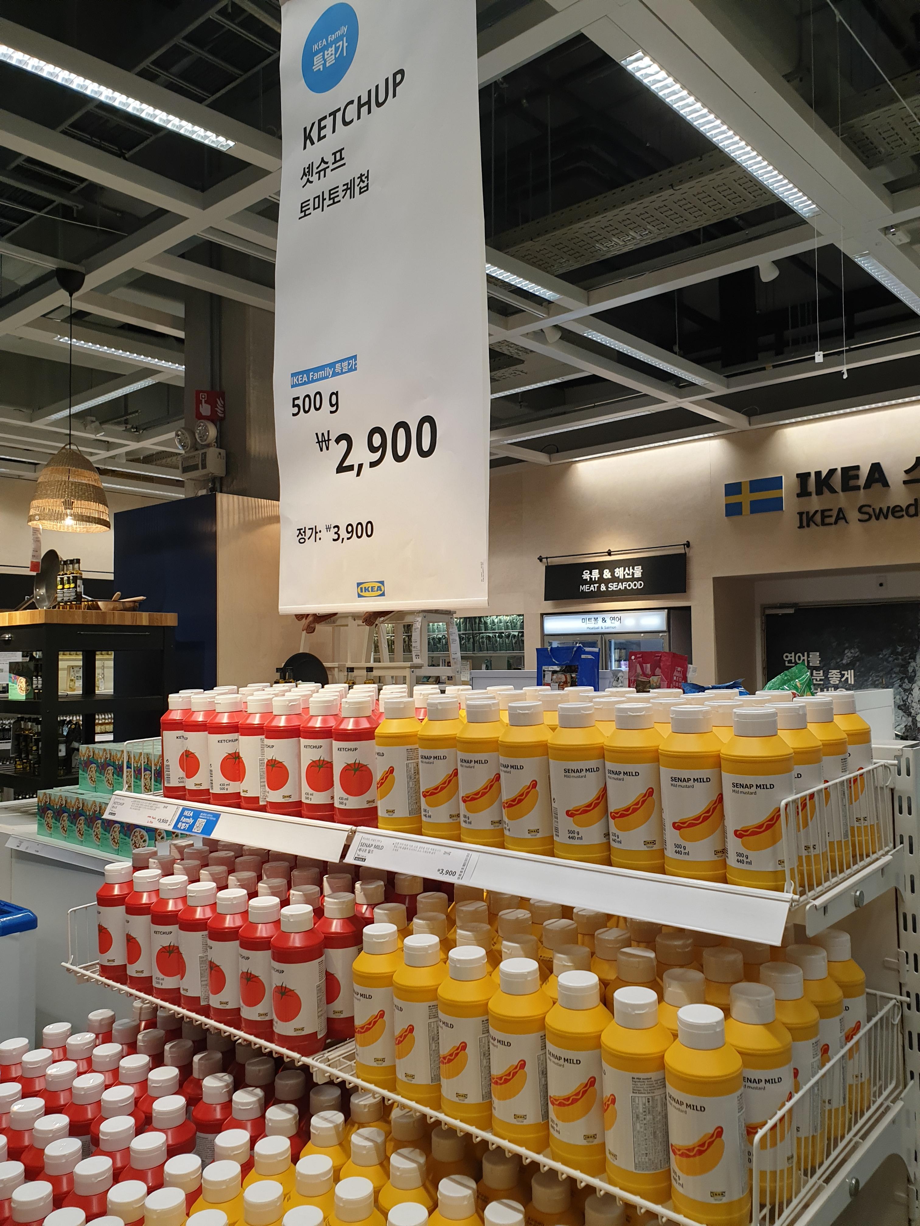 계산을 모두 마치고, 주문서로 주문하고 계산한 손잡이와 레일을 받으러 가는 길. 이것 또한 아까 환불받은 그곳에 있다. 가는 길에 이케아 식재료품을 취급하는 매장을 지났는데 케첩이랑 머스터드 소스 왜 이리 귀엽죠? 셋슈프 2,900원...이거 맛있나요? 이케아 핫도그에 뿌려먹는 게 이건가? 맛은 모르겠는데 귀여워서 너무 사고 싶었다😆