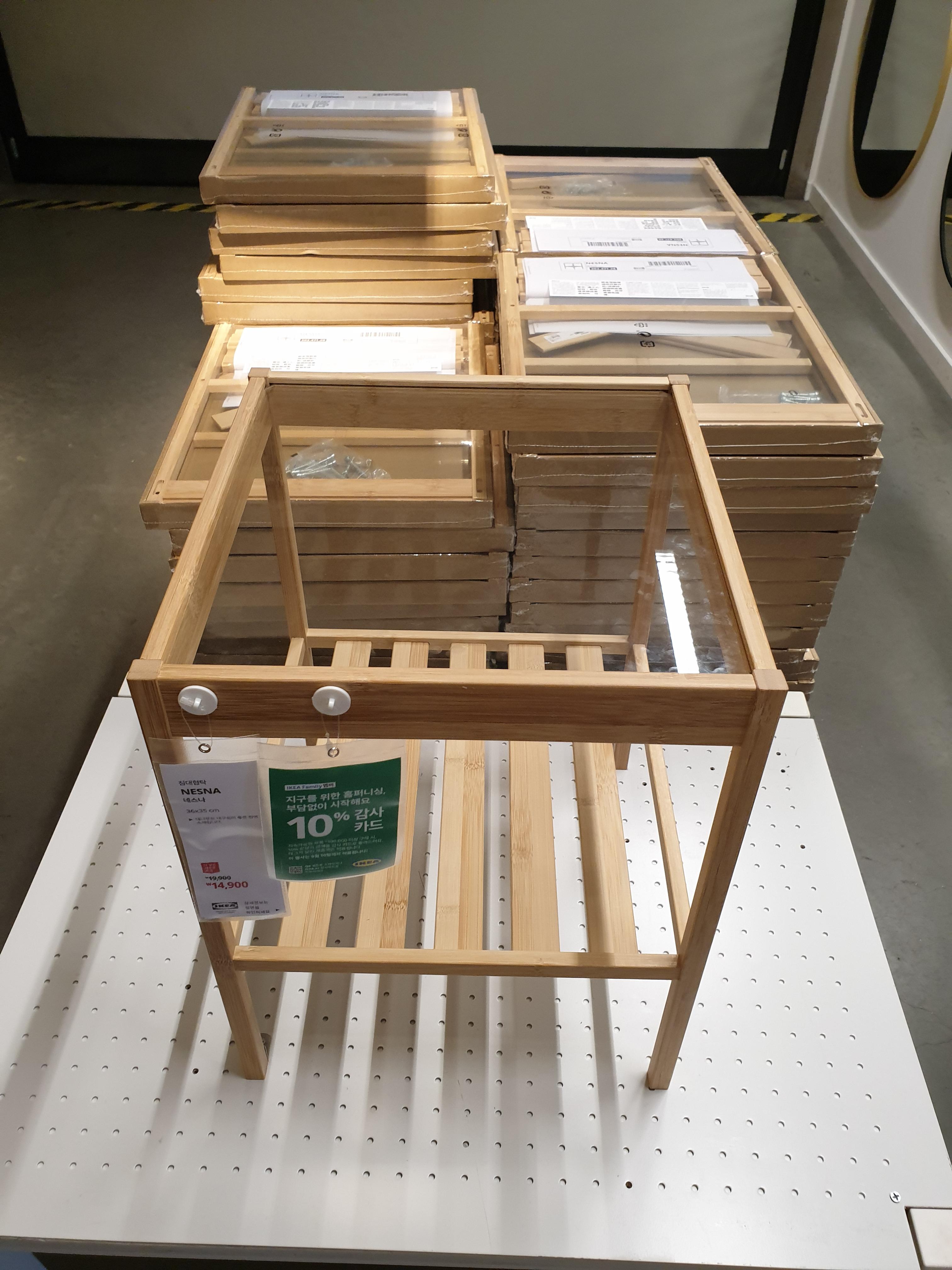 이게 구매하기로 한 건 다 결정했지만 또 구경을 시작했다. 침대협탁인 네스나(NESNA) 14,900원인데 너무 내 취향이고 귀여워서...! 사진을 찍었다. 남자친구도 예쁘다고 구매하고 싶은데 쓸 곳이 없다고 하더니 결국 구매하기로 결정! 크기도 미니미하고 귀엽고 우드고 예쁘다🤎