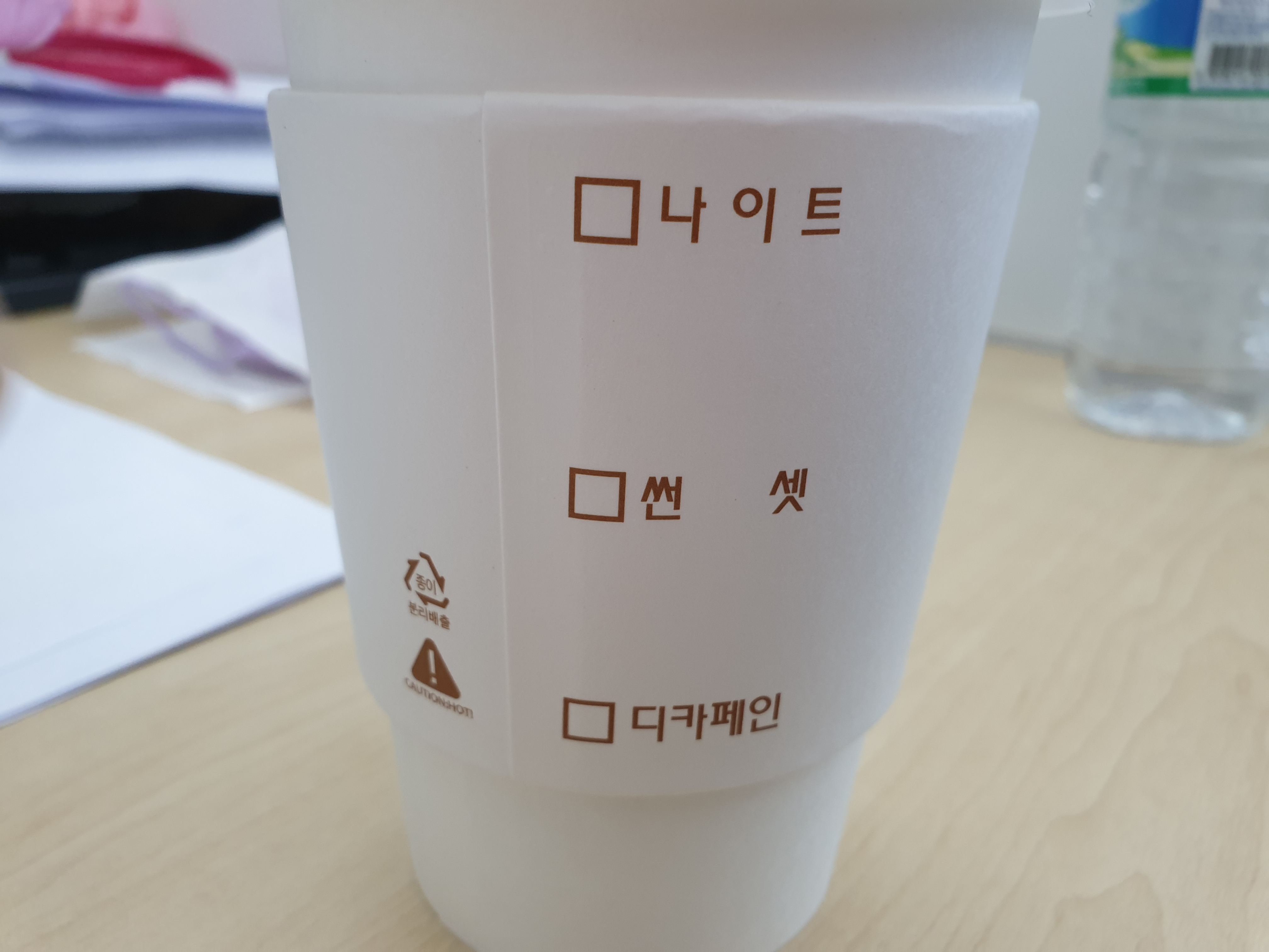 원두는 나이트, 썬셋, 디카페인(3가지) 중 선택할 수 있는데 나는 언제나처럼 디카페인으로 선택했다. 디카페인은 500원 추가되었던 걸로 기억하고 그래서 아메리카노가 2,500원으로 매우 저렴했다. 빠르게 사 와서 너무 귀여운 상어 사진 찰칵📸 너무 귀엽죠💙!