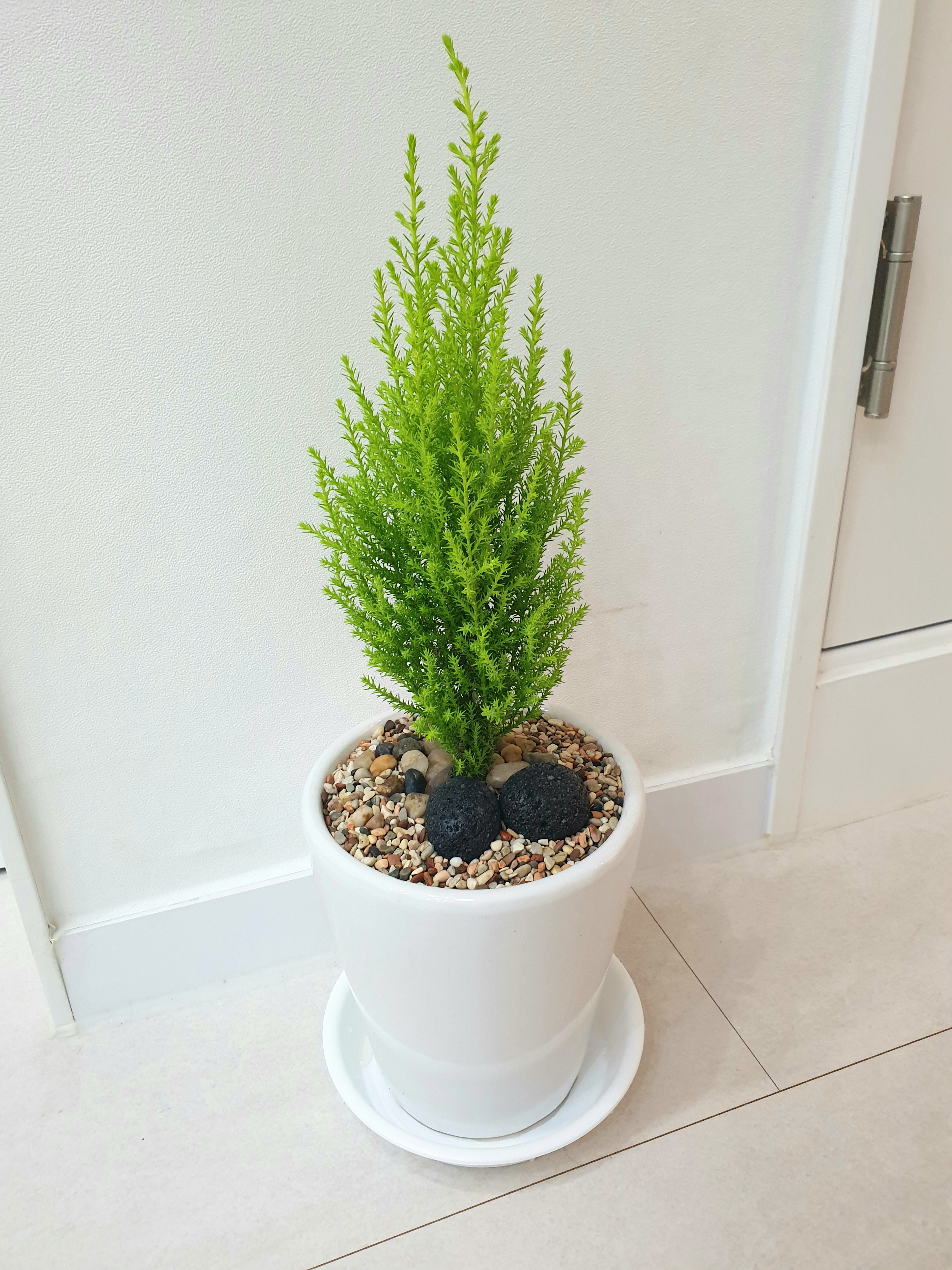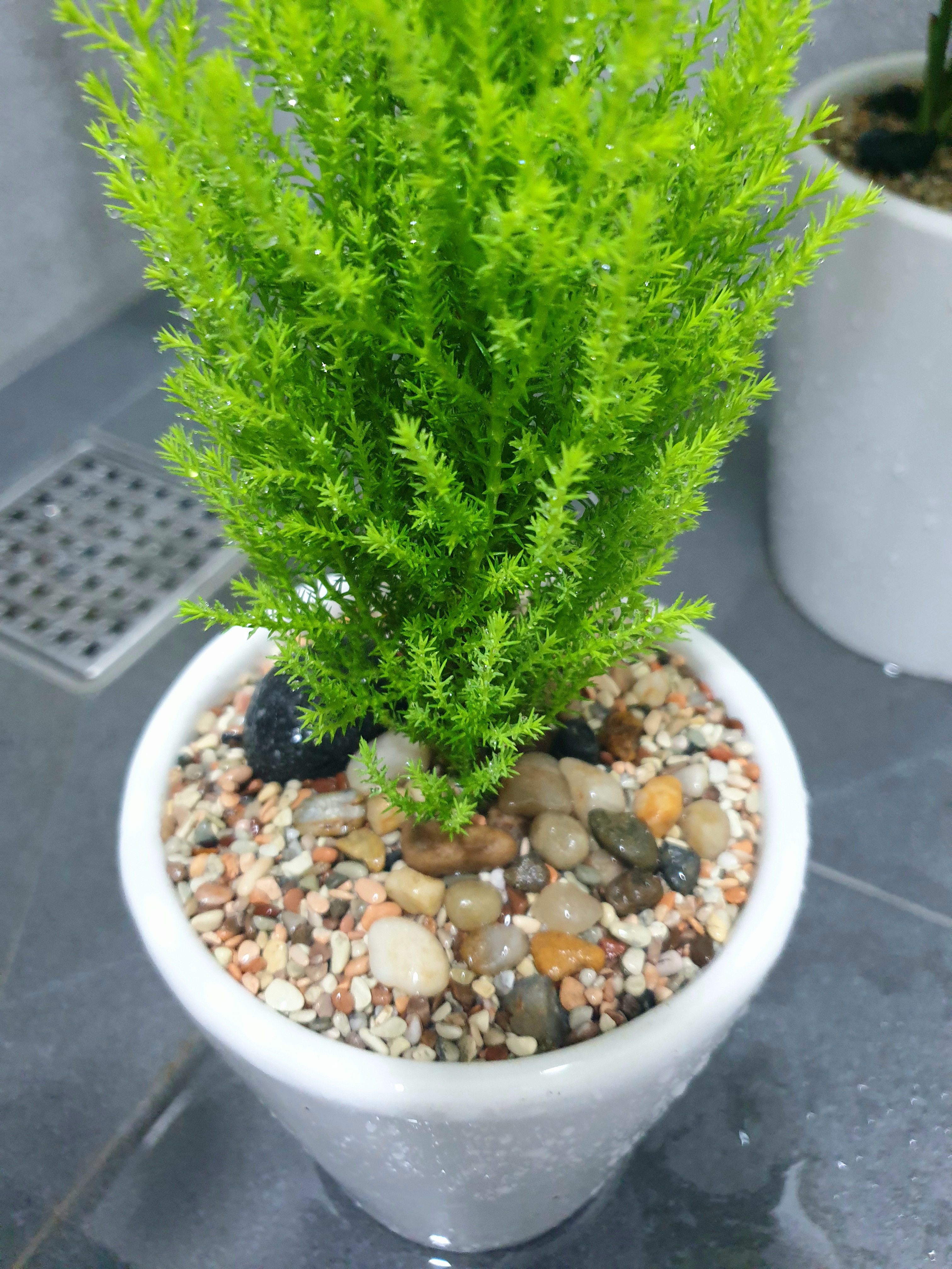 2. 율마 : 쪼꼬미 색색 자갈 위에 검은 큰 돌 두개!