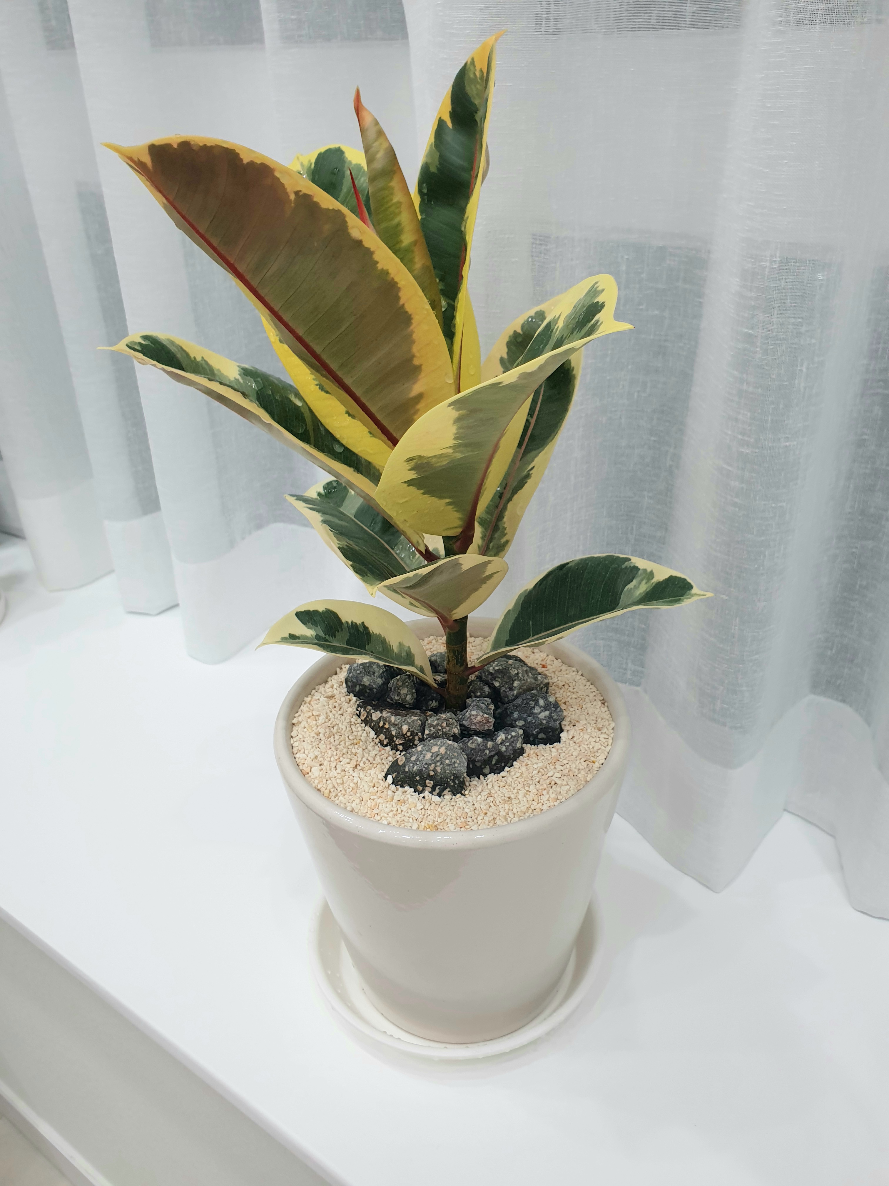 1. 수채화 고무나무 : 하얀 작은 돌 위 큰 까만 돌이 예쁘다!