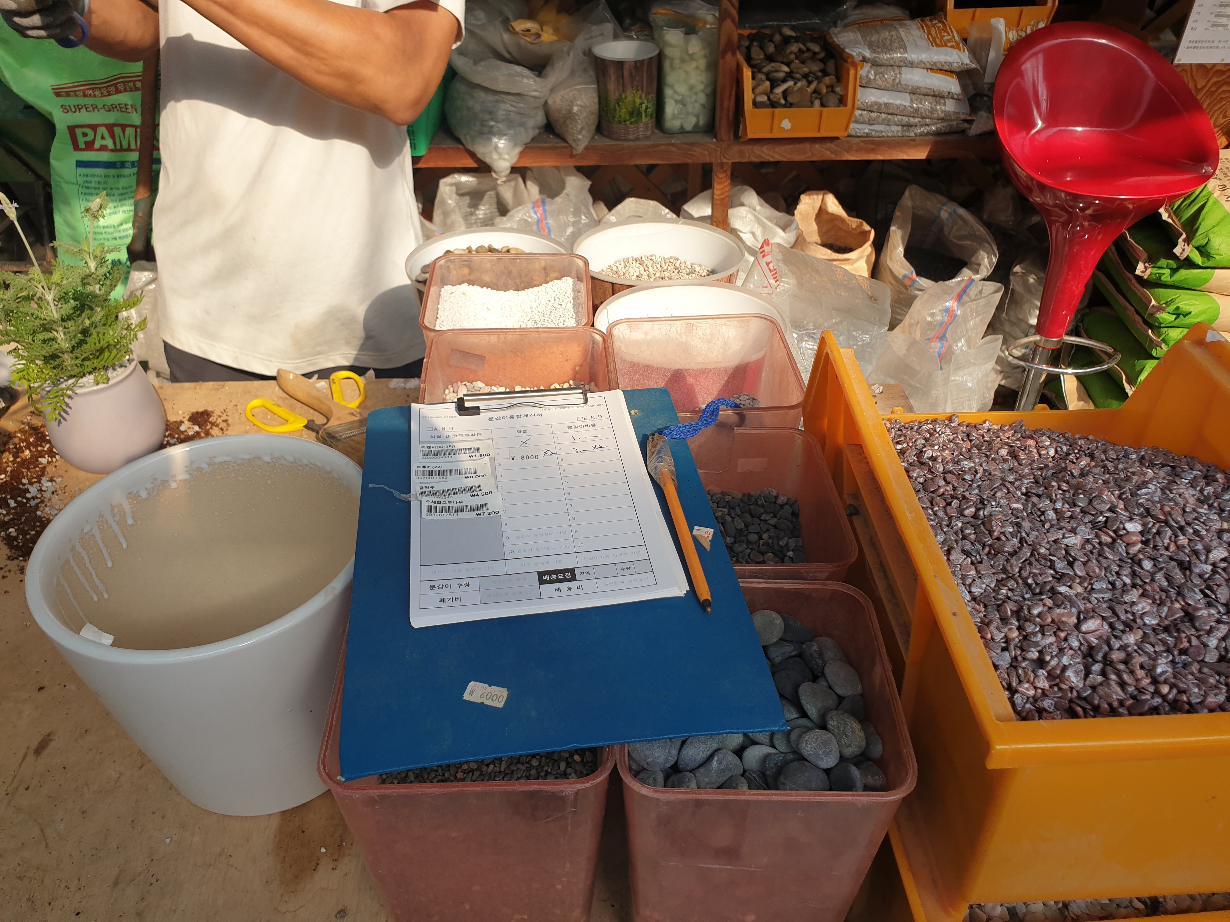 이렇게 화분을 고른 후 분갈이 코너에 갔다. 순서는 아래와 같다.