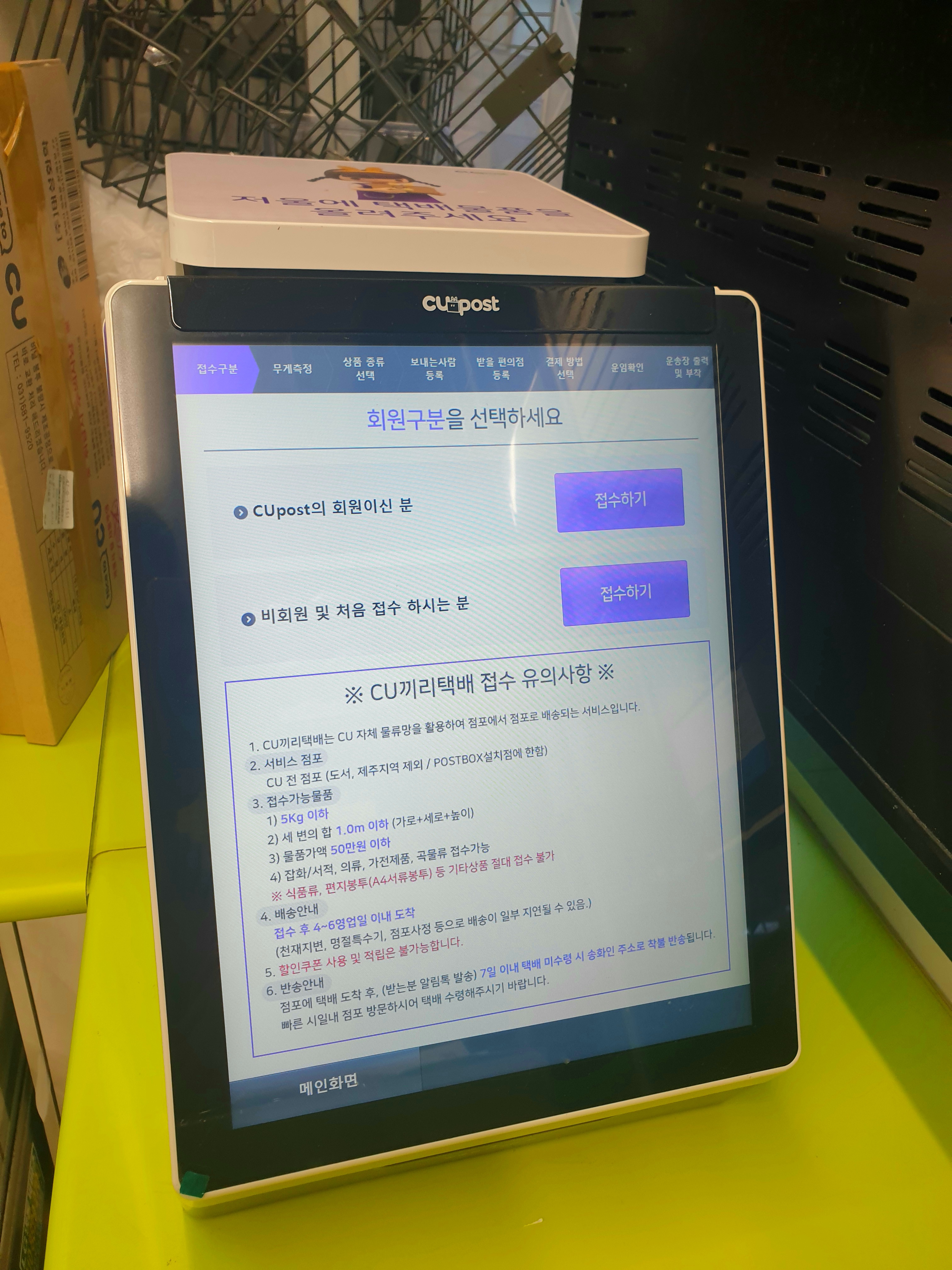 해결책은 "회원 택배 접수"가 아닌 "CU끼리 택배 접수"를 클릭하면 된다.