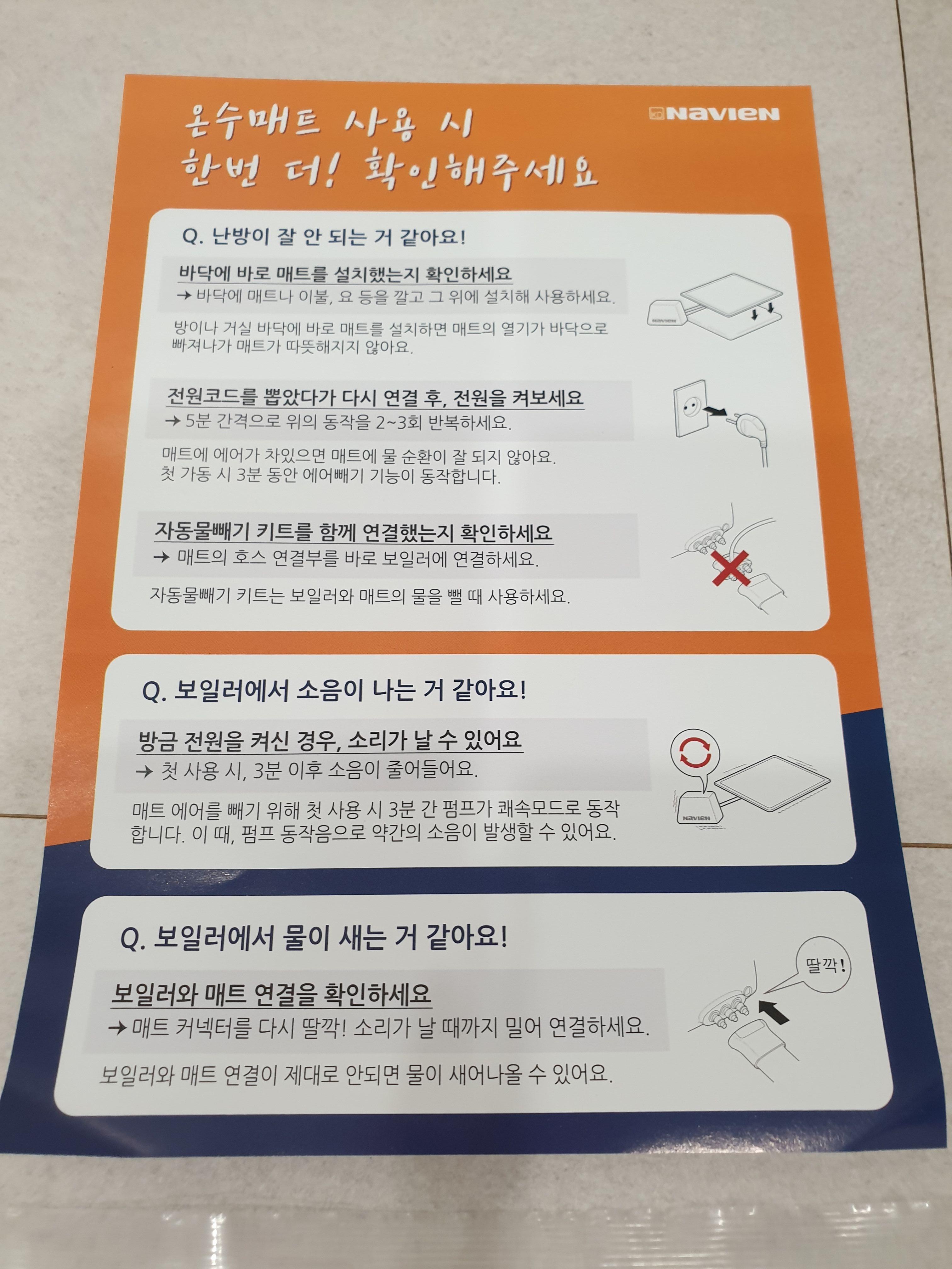 일단 여기서 난 놀란 게 온수매트가 말을 한다. "물이 부족합니다", "희망 온도를 35도로 설정하였습니다" 이런 식으로 요즘 에어컨처럼 말을 한다. (나만 이게 신기한 건가?🤣)