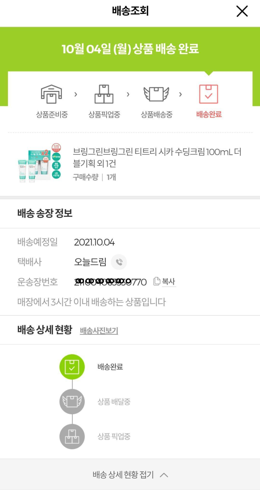아무튼! 오늘드림은 운송장 번호 있어도 전화해봤자 고객센터로 연결되니 되도록 휴일에는 시키지 않으셨으면 한다.