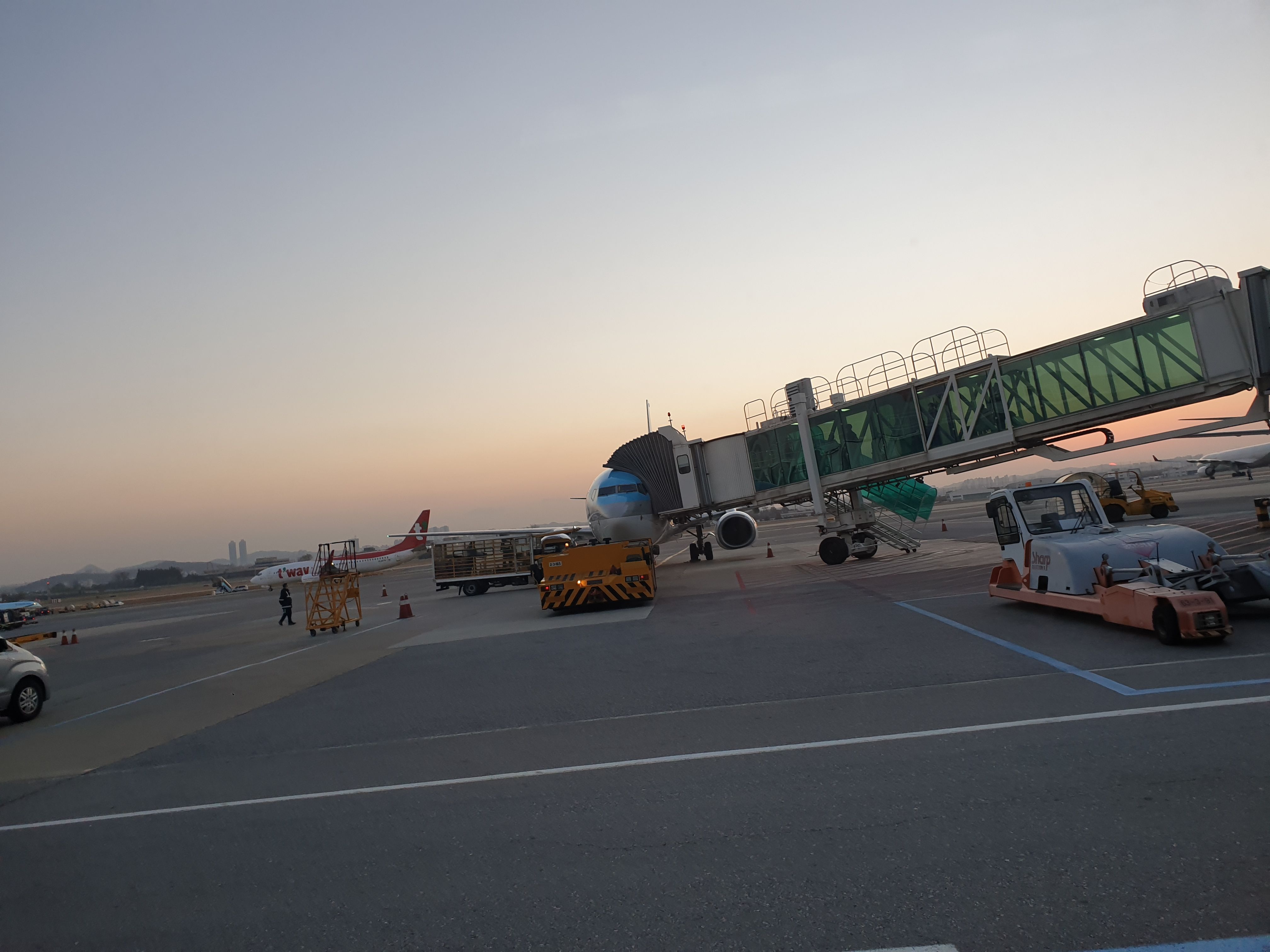 내가 탄 티웨이 항공 비행기는 버스를 타고 이동해서 타는 방식이었다.