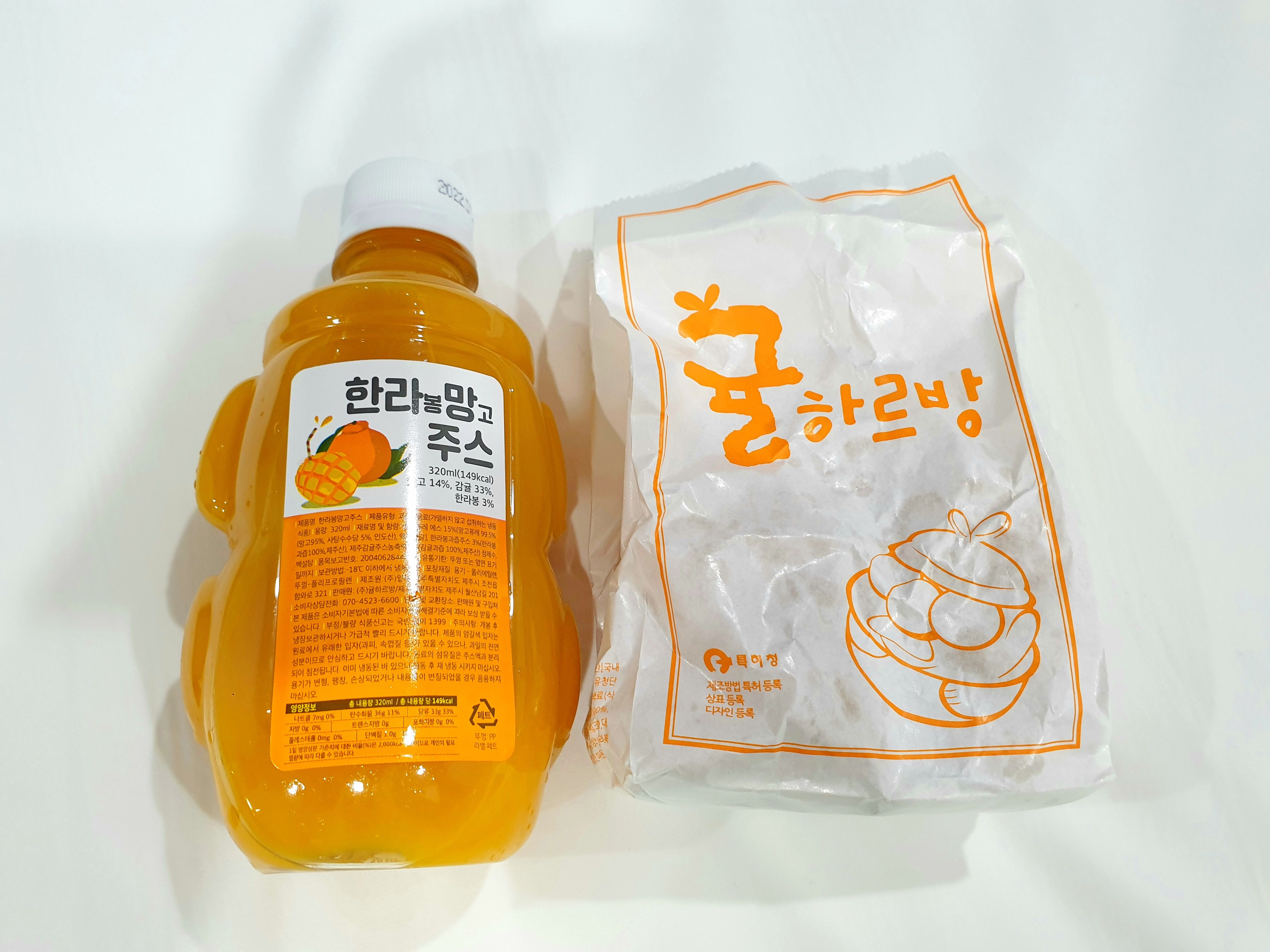 동문시장 귤하르방빵, 한라망고 쥬스 + 청춘이오란다 과즐