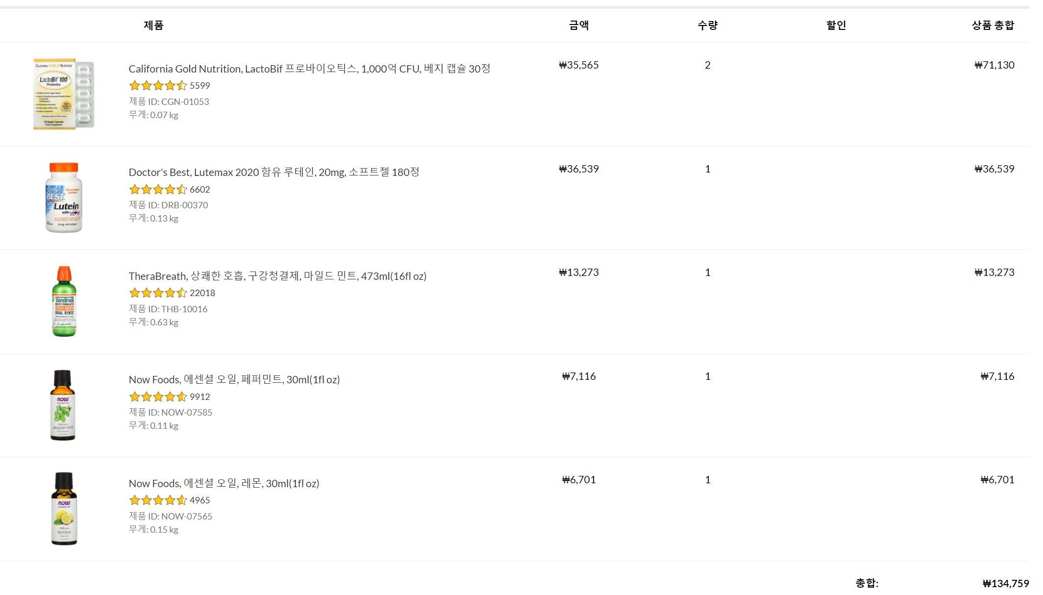 아이허브에는 정말 다양한 종류의 오일을 판다.
