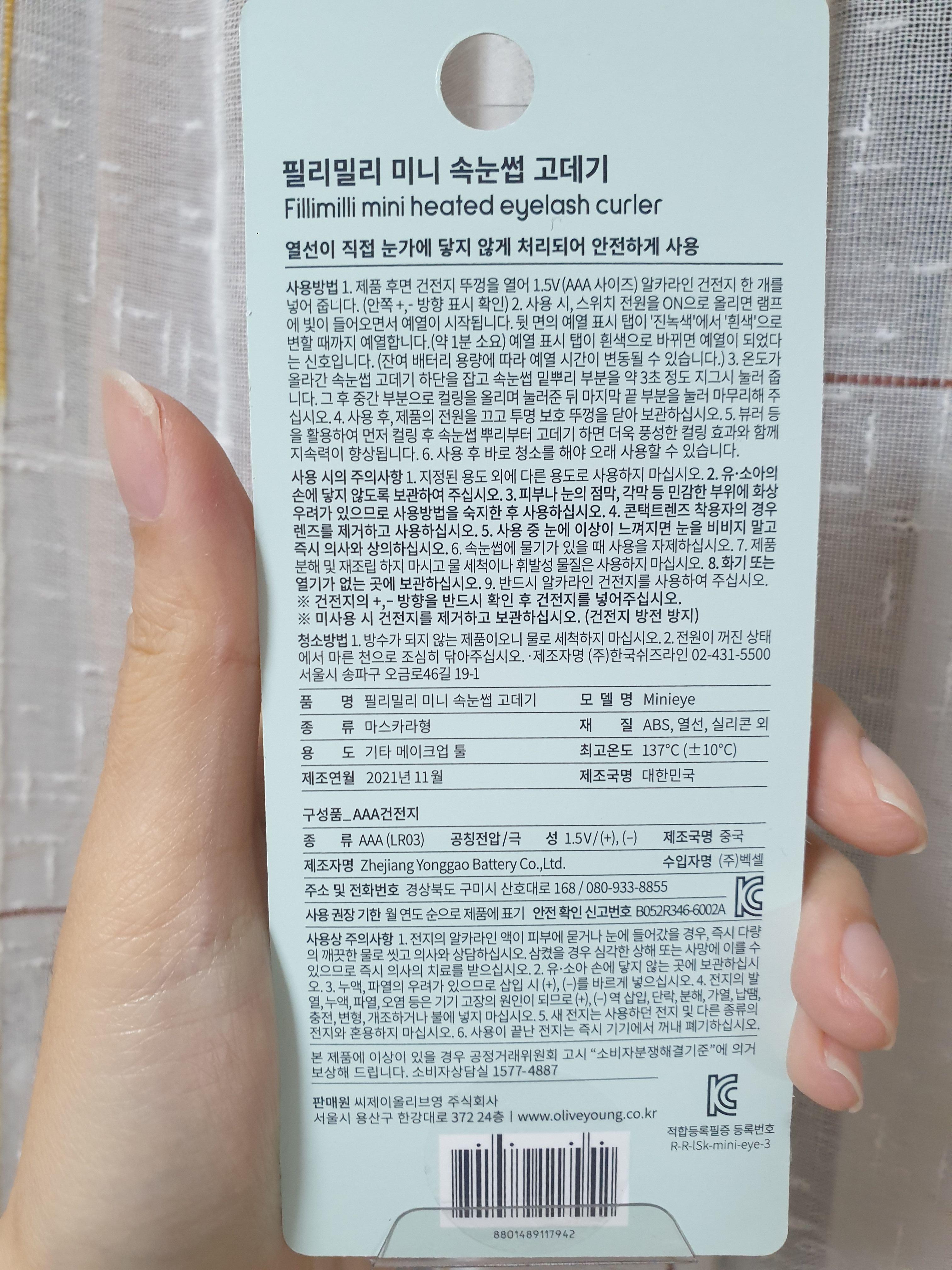 그러다가 올리브영에서 뭔가 작아 휴대하기 편하고 새로운 모양이라 궁금해서 "필리밀리 속눈썹고데기"를 샀다.