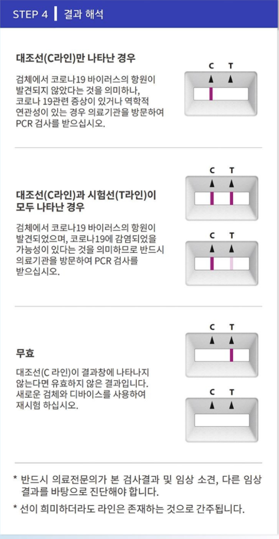 ※ '음성'으로 표시되더라도 코로나19로 의심되는 증상이 있다면 PCR 검사 필요 (100% 정확한 기준으로 생각하면 X)
