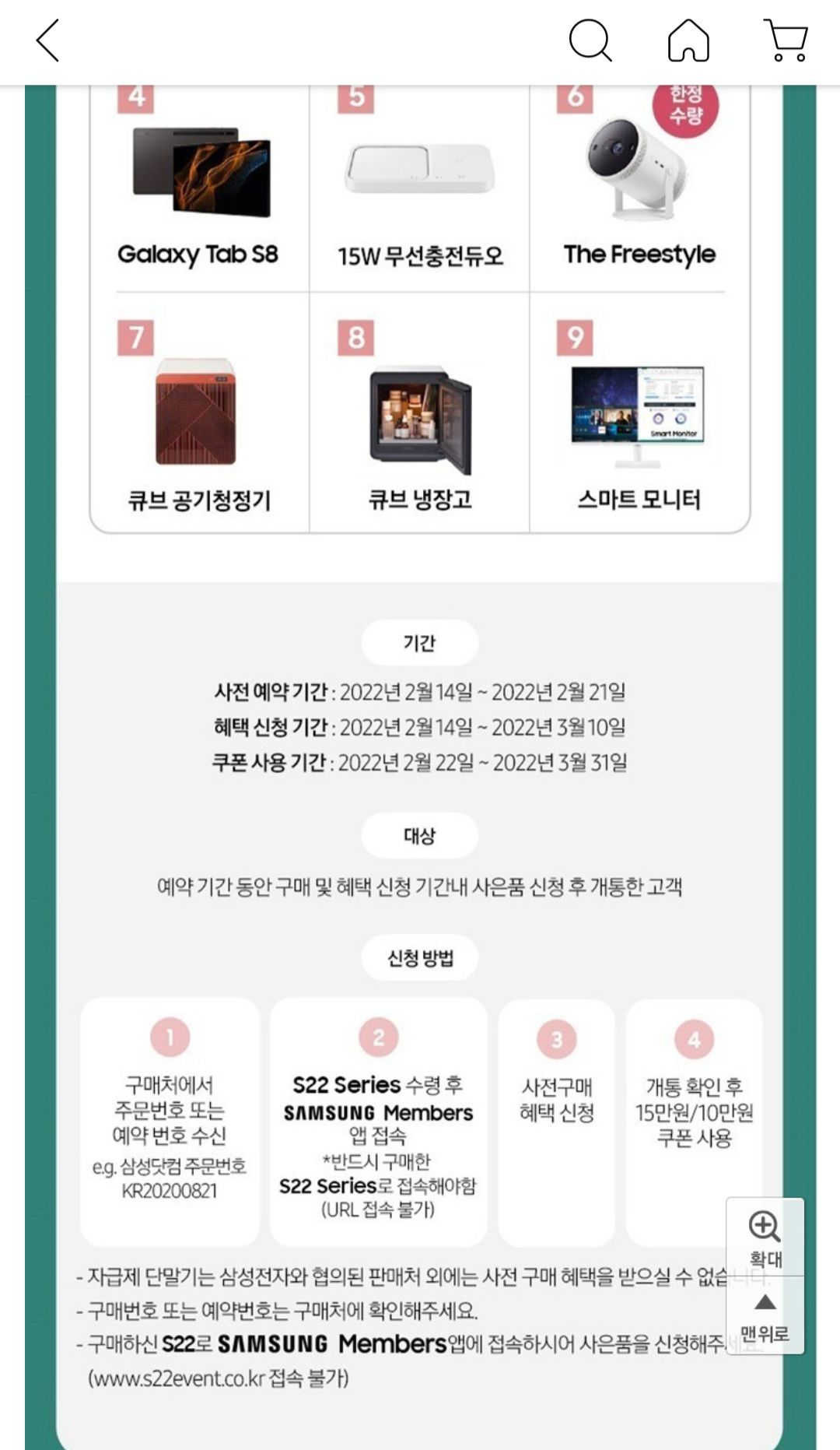 | 갤럭시s22 자급제 사전예약 사은품 신청 방법_15만원 갤럭시 버즈 프로 공짜! (0) | 2022.03.01 |