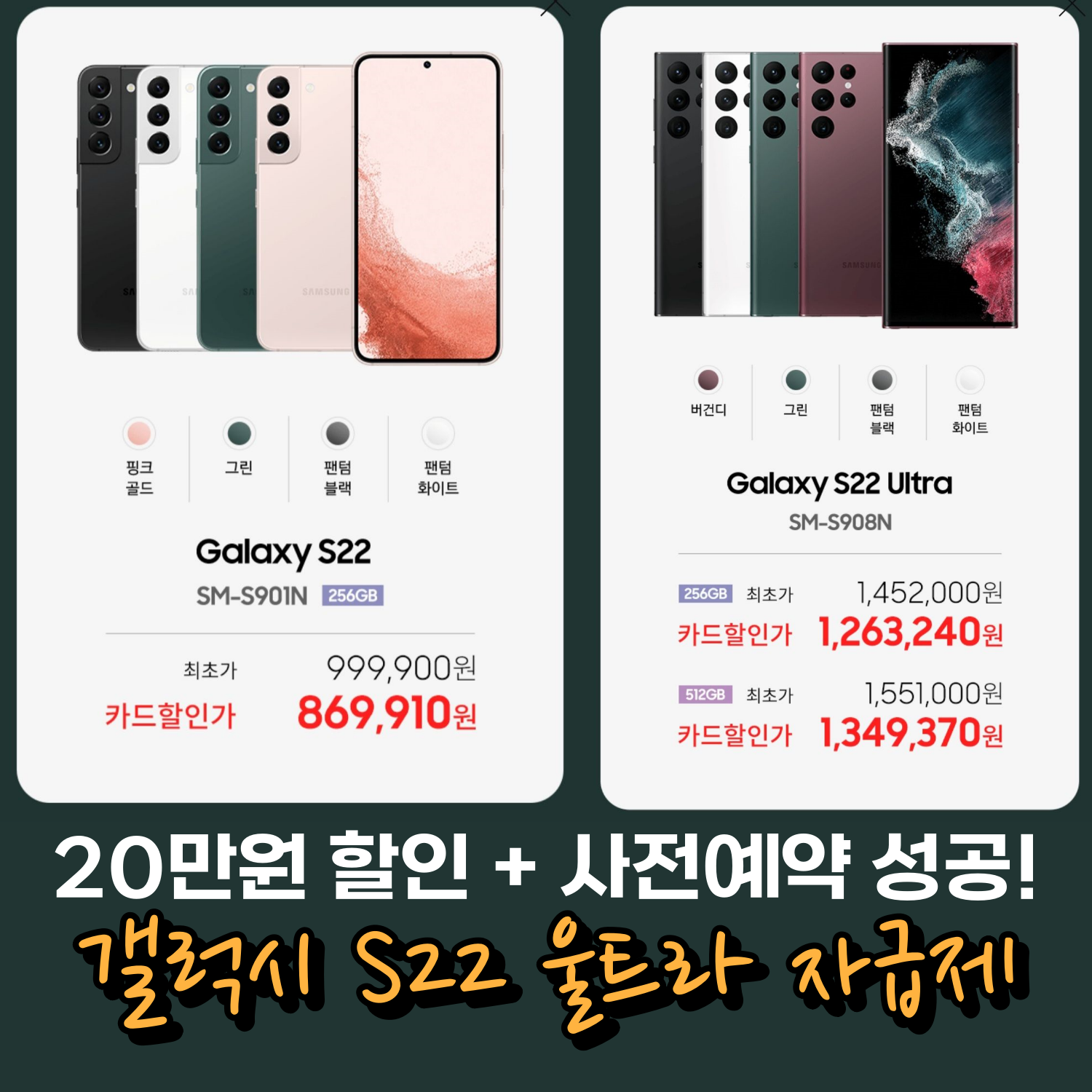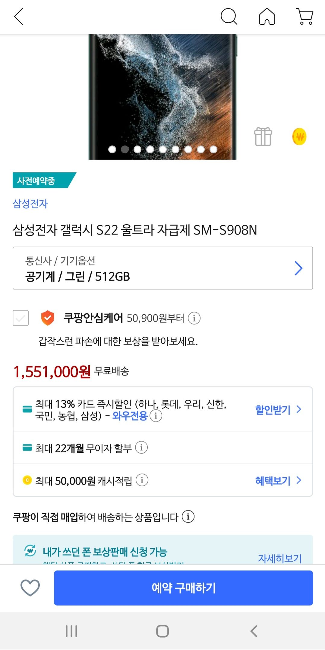 20만원 할인! 갤럭시 S22 울트라 자급제 사전예약 성공 (by. 쿠팡)