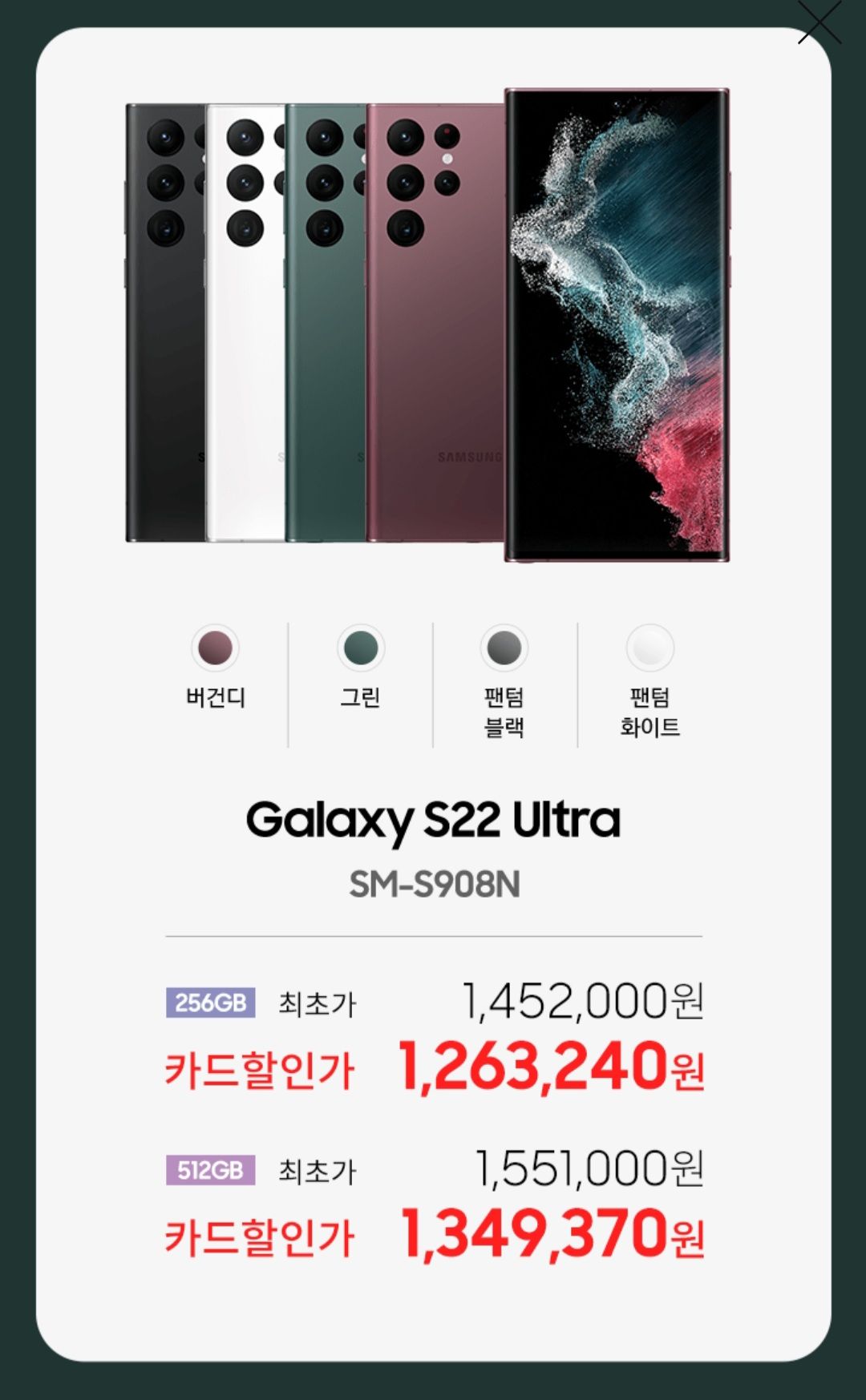 내가 사고 싶던 건, 바로 "갤럭시 S22 울트라 자급제_그린_512GB" (가장 비싼 거다!)