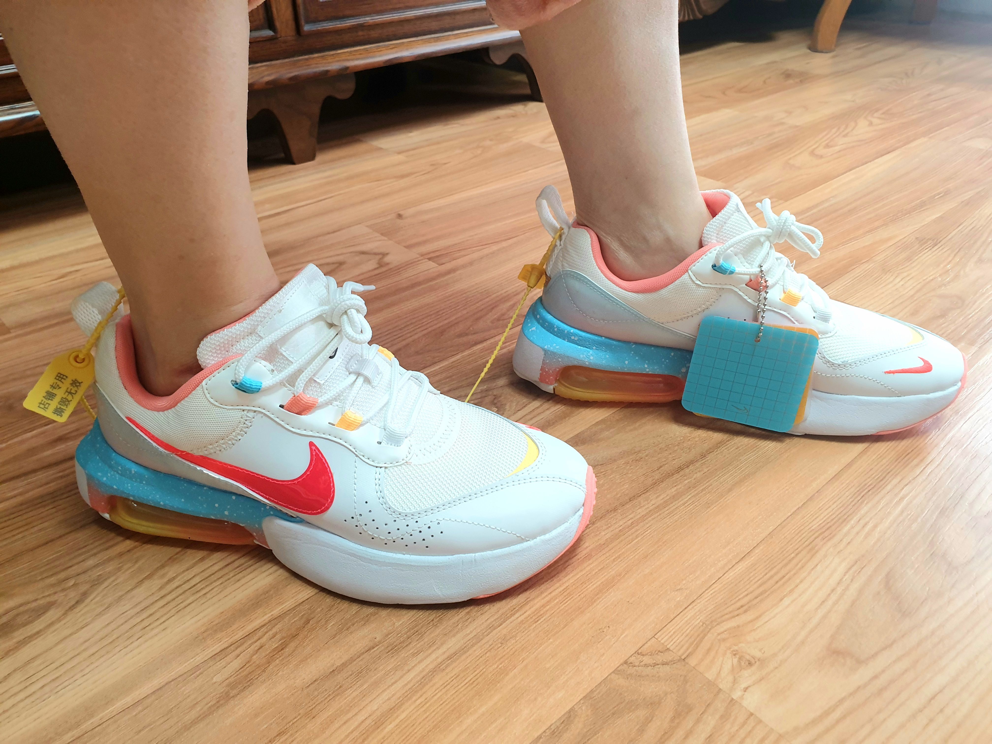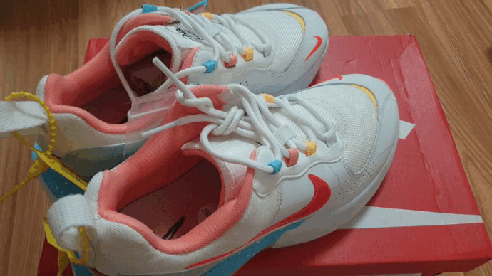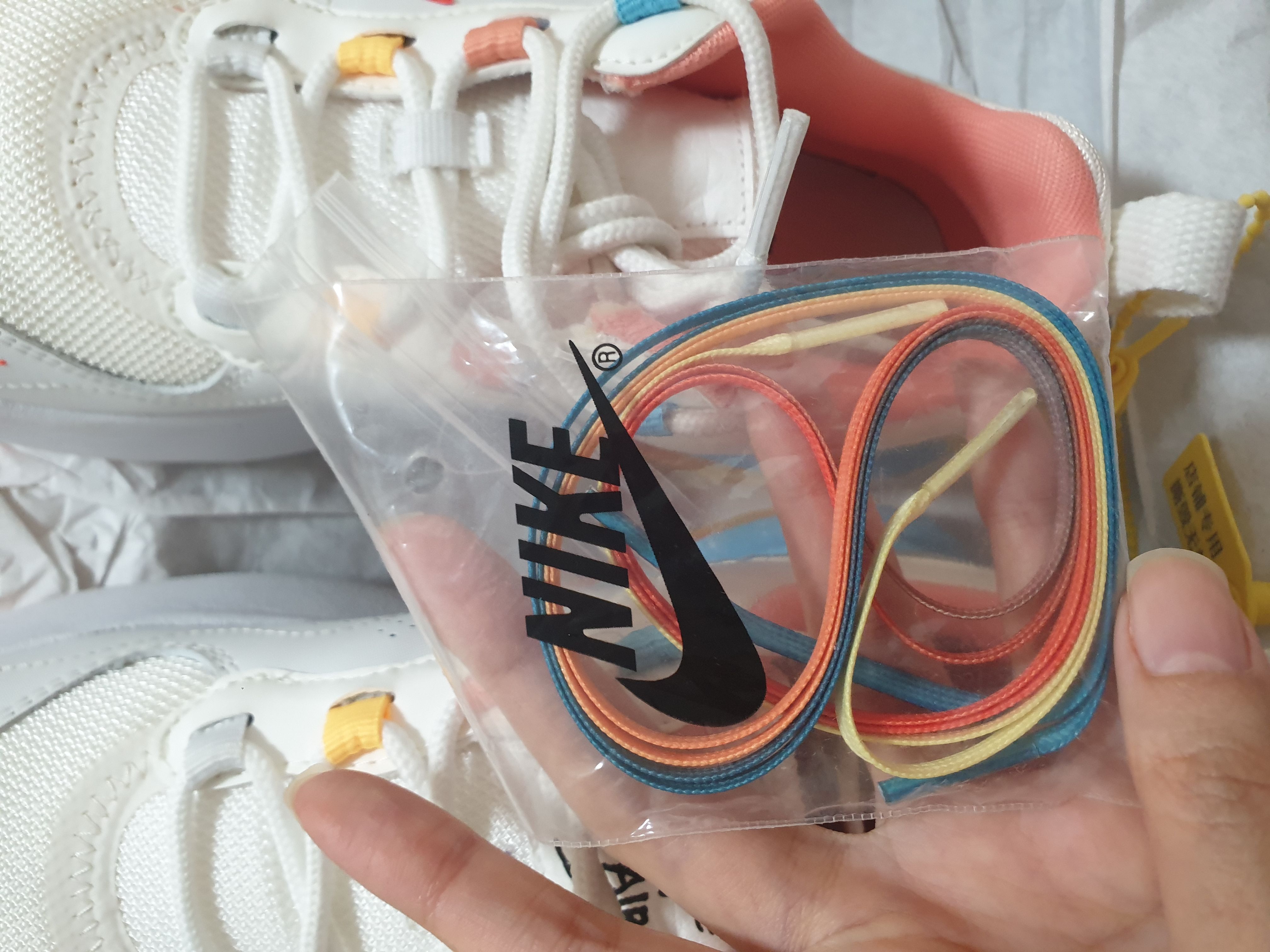 조금 더 살펴보니 중국에서 산 제품이라 그런지 중국어로 쓰여 있는 태그와 이 신발 전용 화려한 그라데이션 신발끈이 함께 동봉되어있었다.
