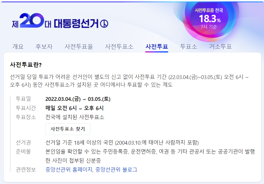 대통령선거 사전투표는 오늘(5일) 저녁 6시까지 가능해서 준비물, 시간, 방법 등을 후딱! 알려드리려고 한다.