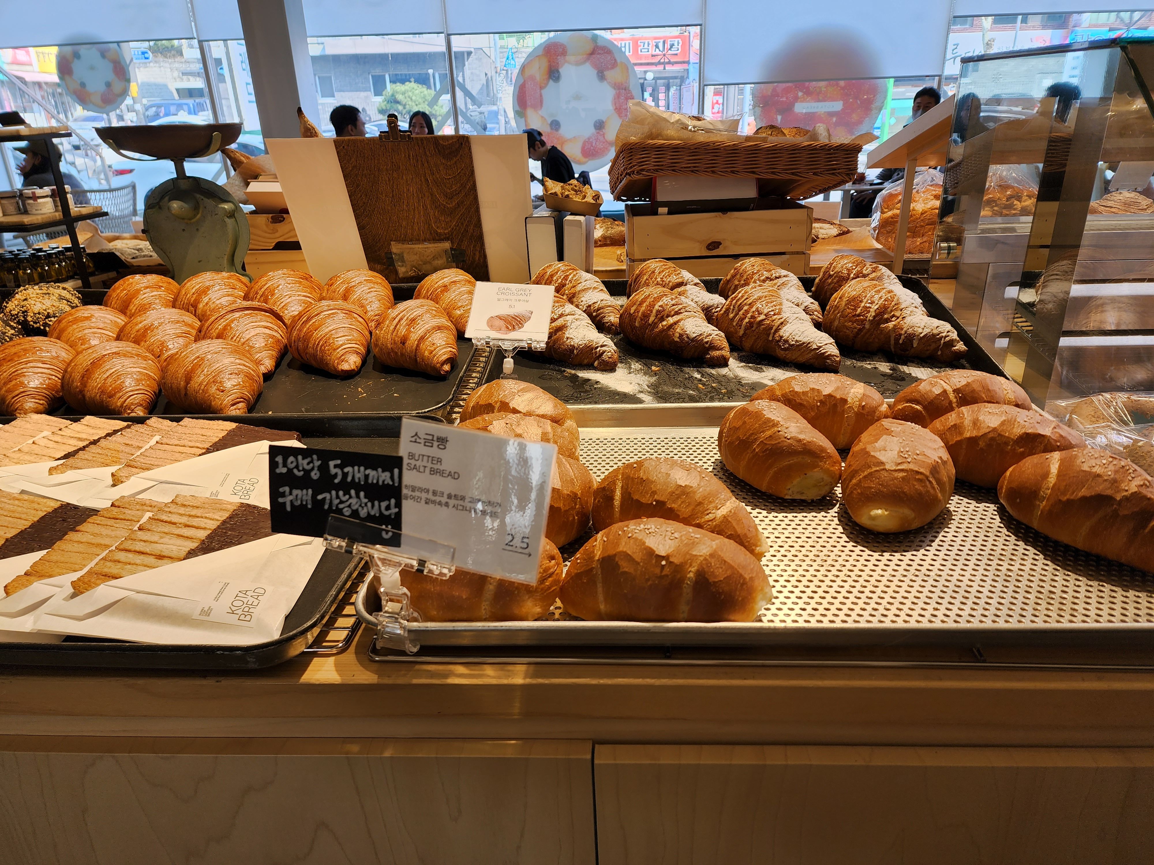 여기서 몇가지 빵을 사왔는데 다 맛있었다. 그 중에 소금빵이 다른 곳에 비해 가성비가 좋은 것 같아 사진을 찍어봤다. 크기가 매우 커서 왜 개인 당 5개 구매로 제한되어있는지 제대로 알 수 있었던?!