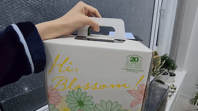 지금이 투썸 20주년 행사를 하는 시기라 그런지 원래 검정 박스가 아닌 꽃이 그려진 박스에 담아주셨다. 봄이라서 그런가 화사하고 더 예뻐보였다😁