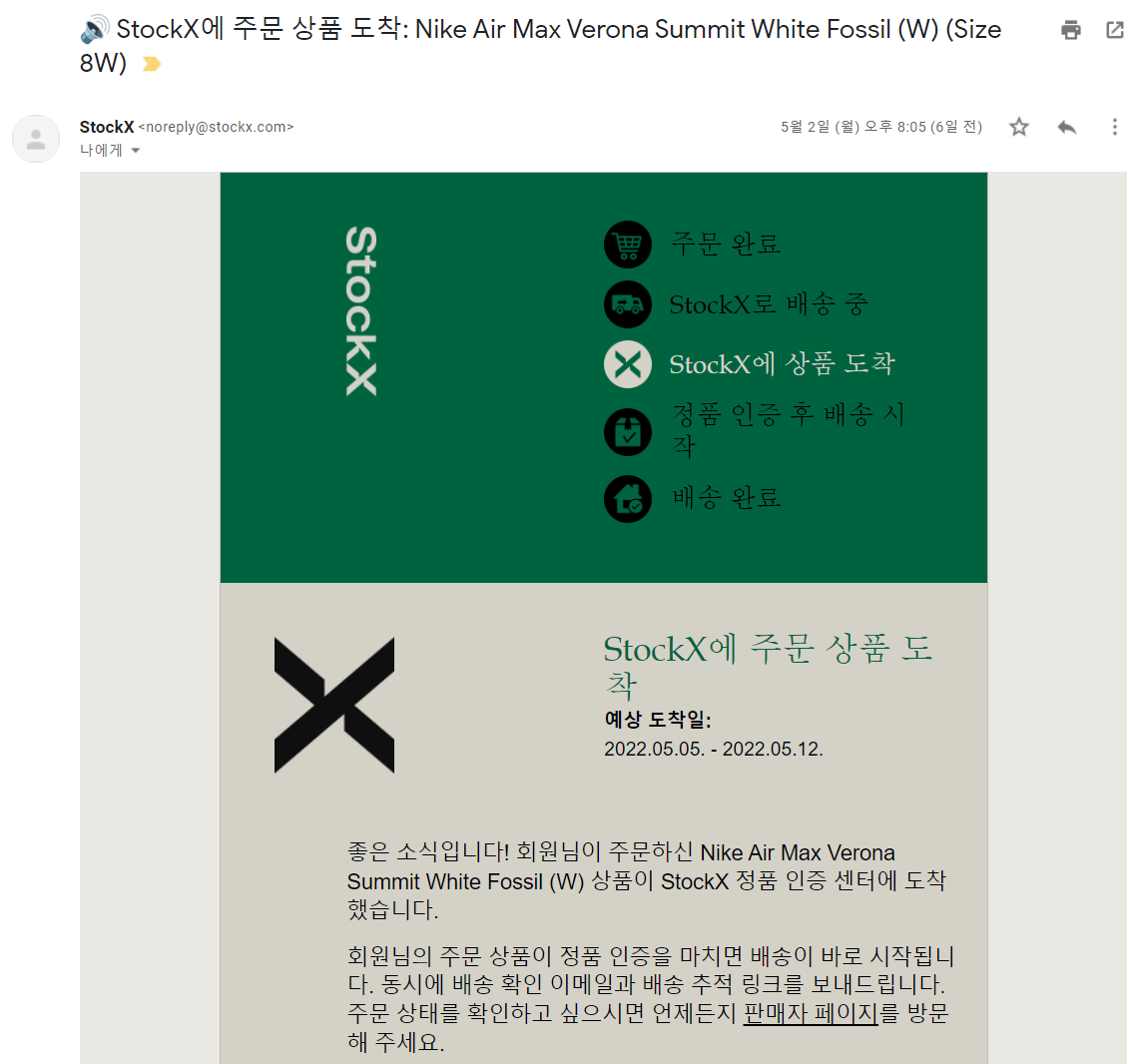 일단, stock X 사이트는 굉장히 만족스럽다. 내가 봤던 어떤 사이트보다 나이키 에어맥스 베로나 상품이 다양했고, 가격은 합리적이었고 (역제안도 가능하고, 그대로 산다고 해도 내가 봤던 가격들보다는 조금 저렴한 편), 정품 인증을 해당 사이트에서 해주니 편리했다.