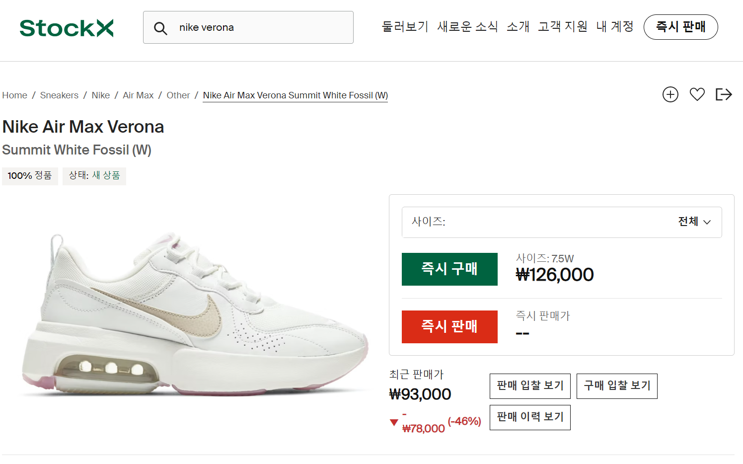 3. 나이키 에어맥스 베로나(stock X 해외직구) 확인하기