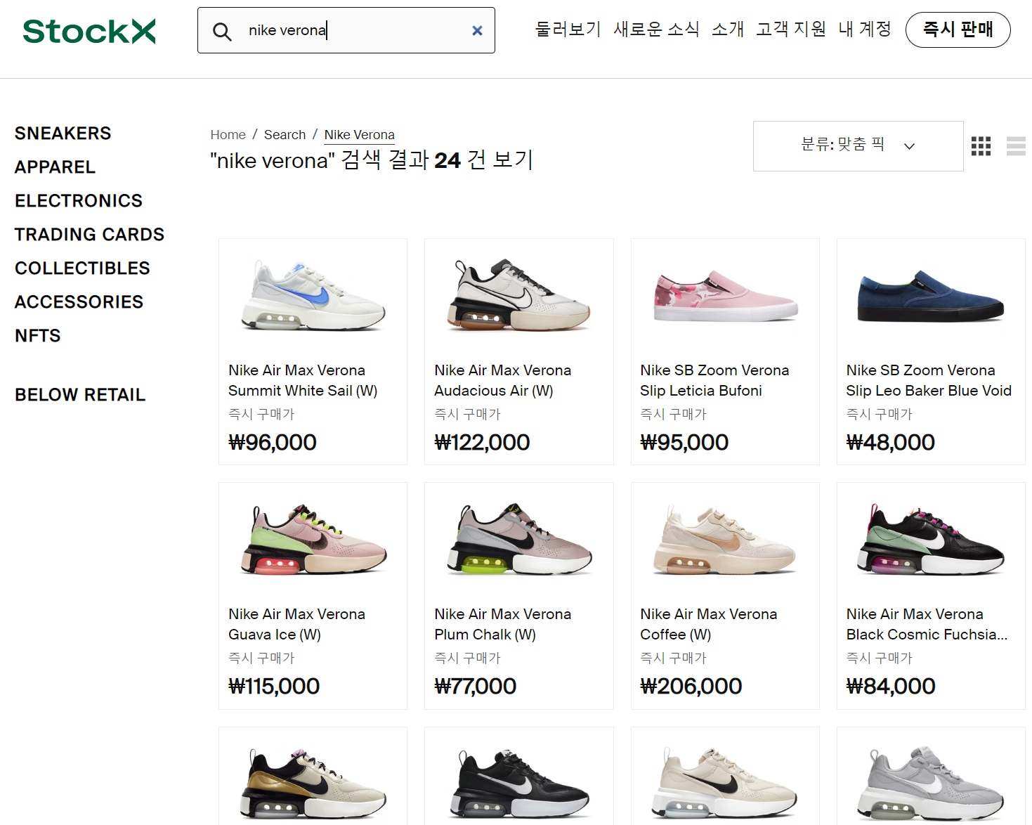 나는 베로나 구매 예정이기때문에 바로 nike verona로 검색을 했다. 어느 사이트보다 다양한 상품이 검색되어서 놀랐다.