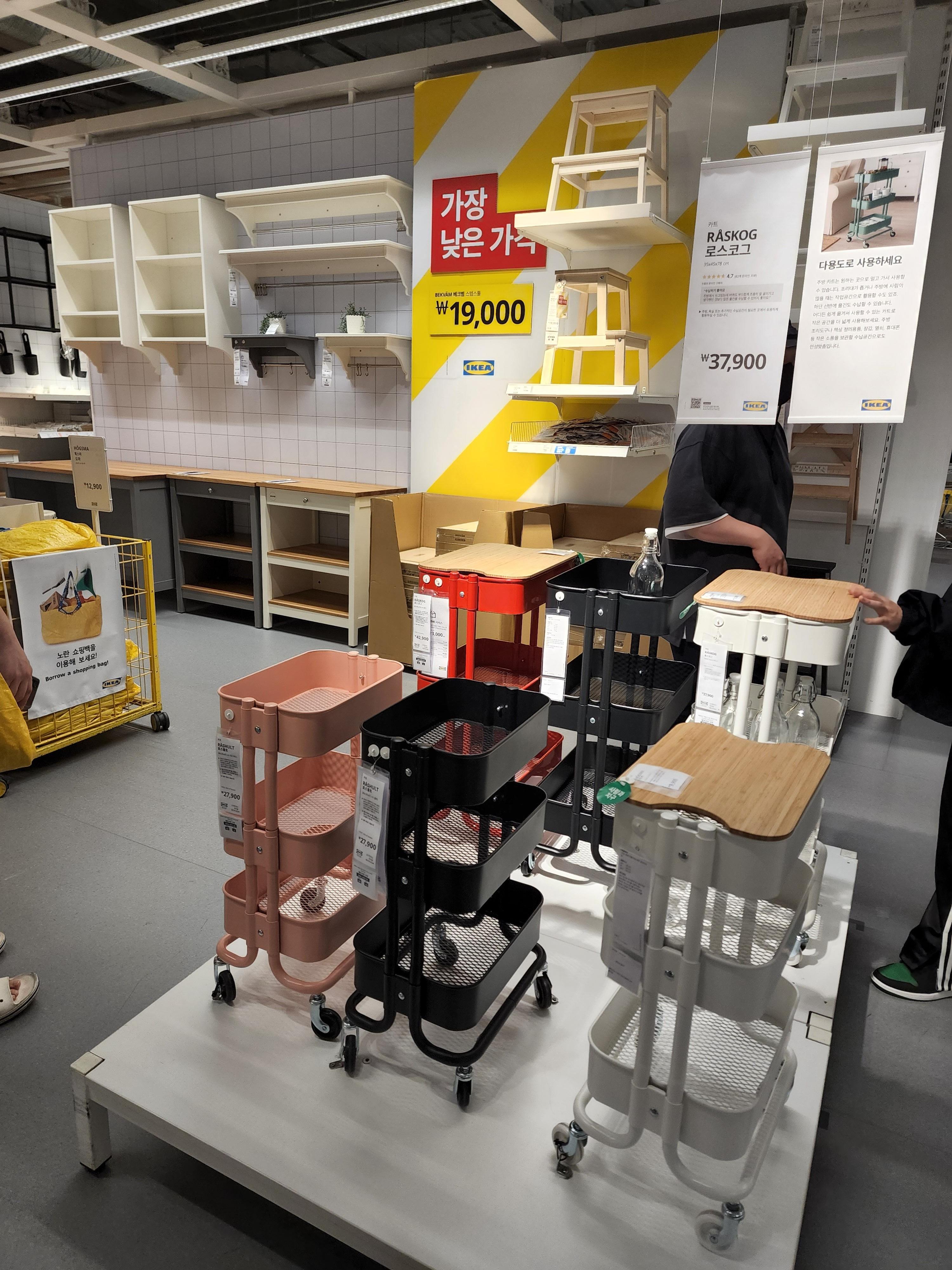 로스코그도 인기가 좋은지 갈 때마다 색상이 추가되고 형태도 다양해지고 있다. 집에서 저렇게 바퀴 달린 수레를 쓸 일이 있나...싶은데 아마 큰 주방을 가진 집이나 아기 있는 집 등에서는 유용하게 쓰일 것 같다.