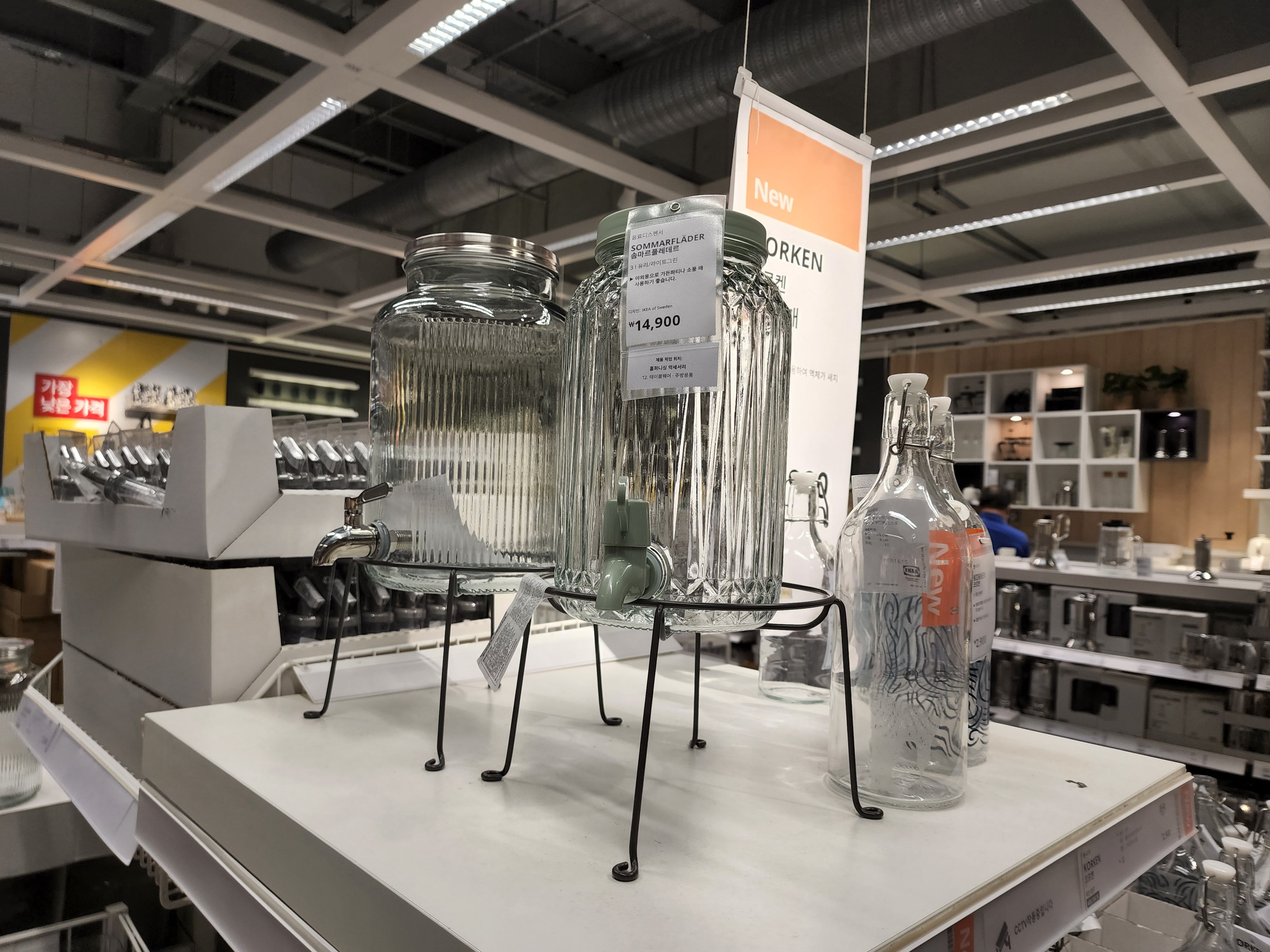 요즘은 보면 캠핑, 서핑 등 목적에 맞는 물품과 옷들도 판다. 그리고 음식점이나 카페에서 쓸 것 같은 아래쪽에 마개 달린 유리병도 구경!
