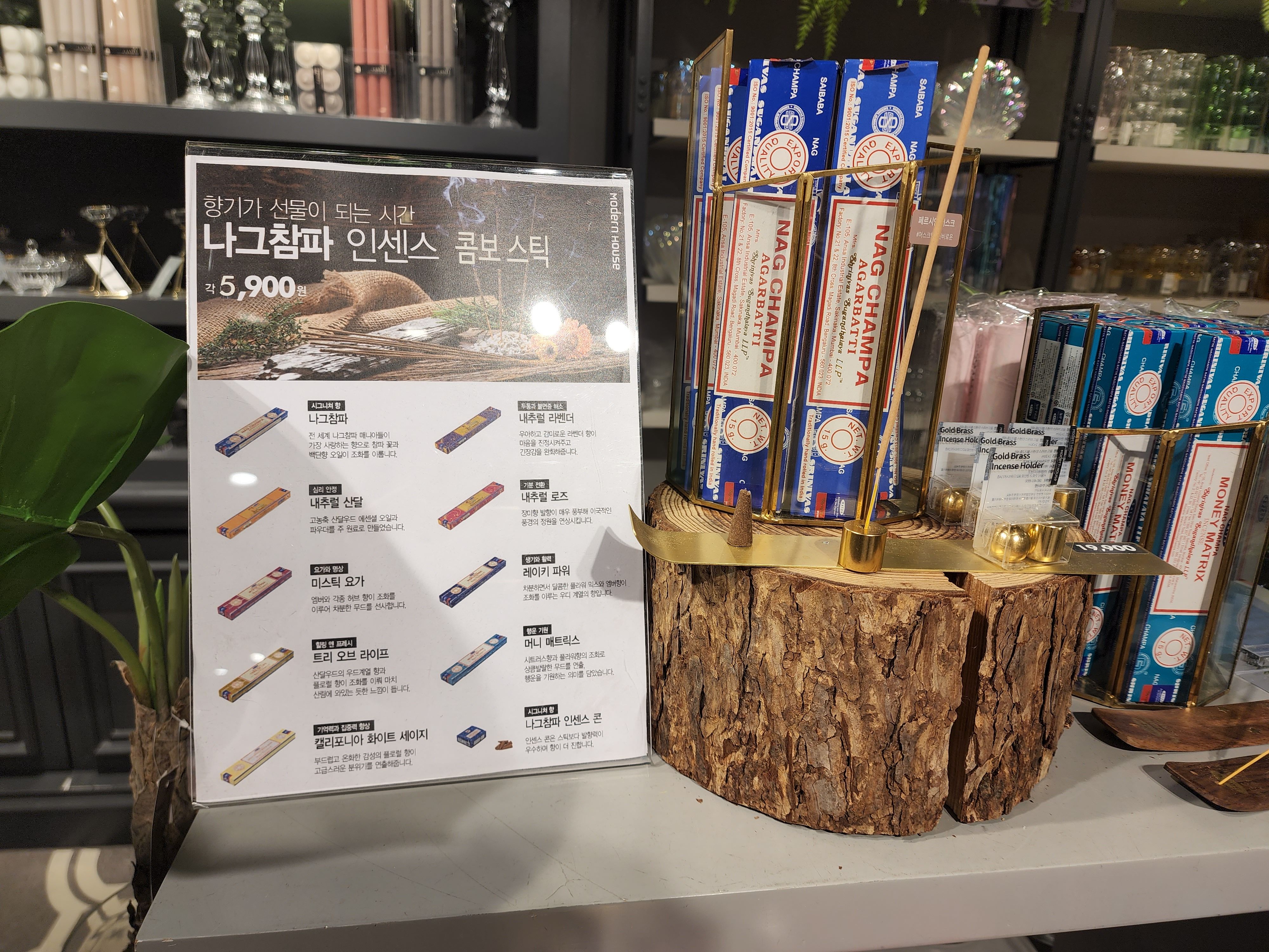 그 바로 뒤에는 내가 평상 시에 많이 사용하는 인센스 스틱! 종류가 많은 건 아니지만 인센스 스틱이 처음이신 분들께는 이 정도로도 충분한 것 같다. 3개를 구매하면 홀더를 준다고 하니 그것도 굿👍