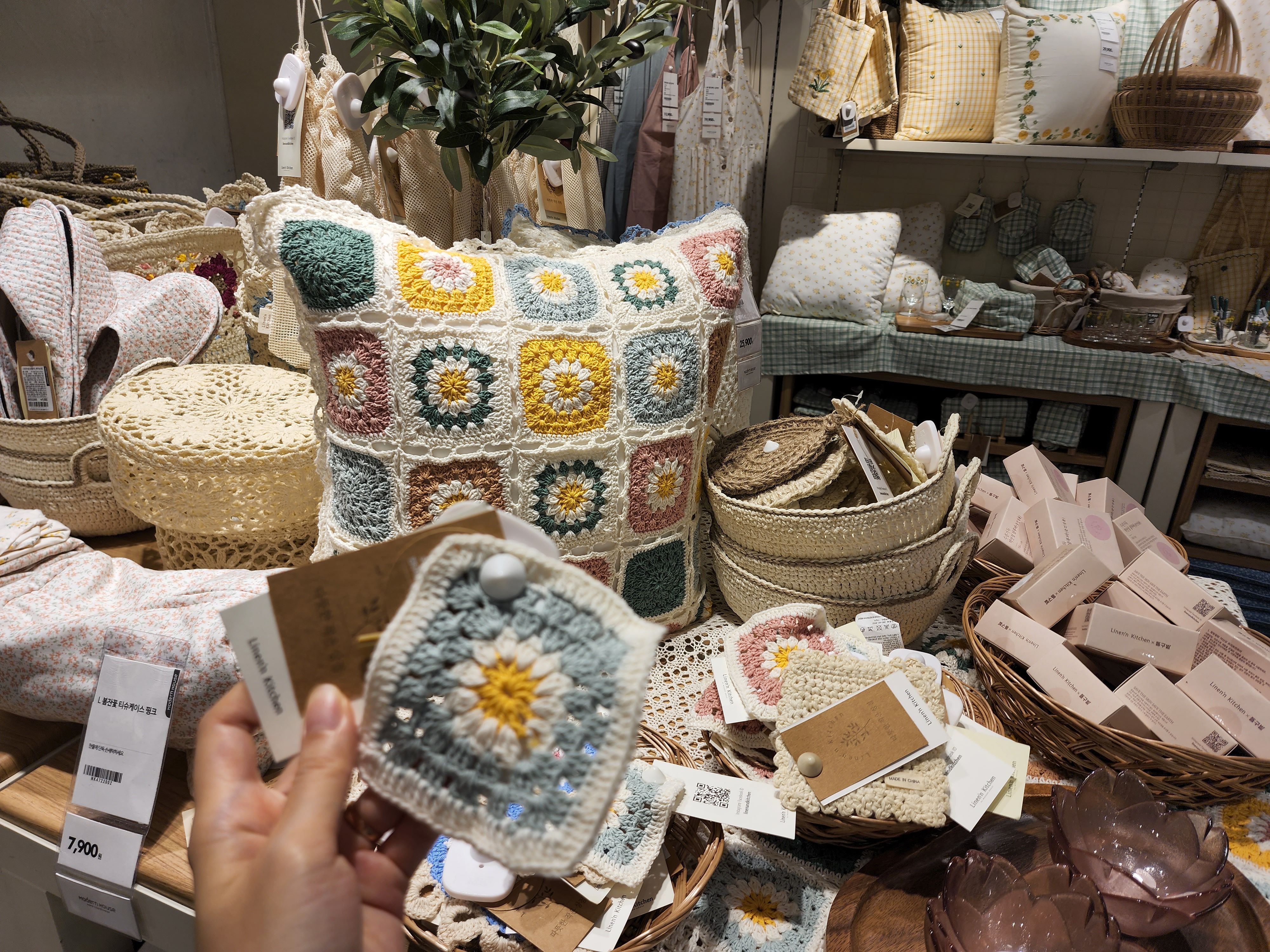 이런 뜨개 느낌 쿠션 커버도 너무 예뻤다. 유행에 맞는, 계절에 맞는 소품들을 진짜 잘 준비해두는 듯!