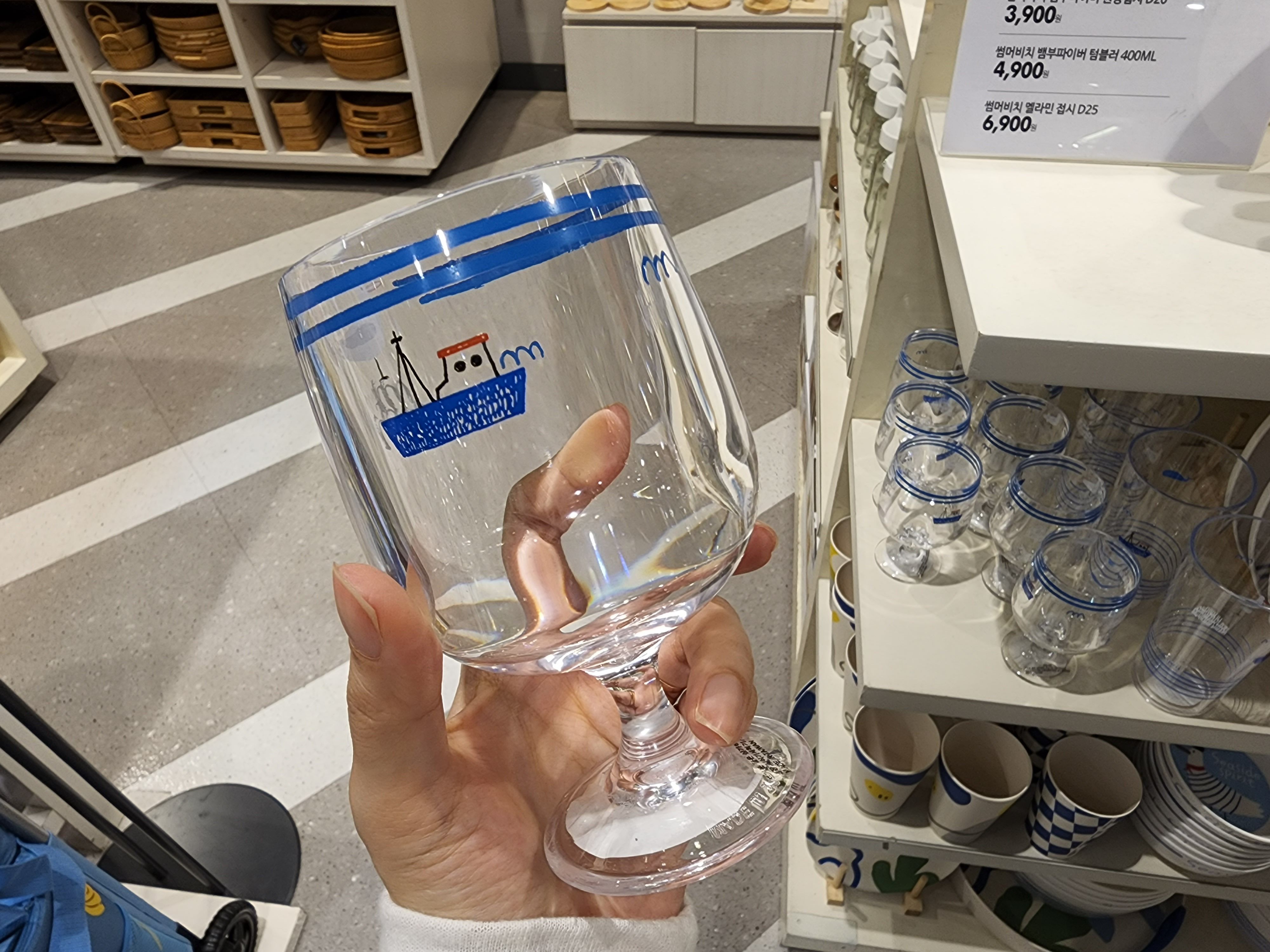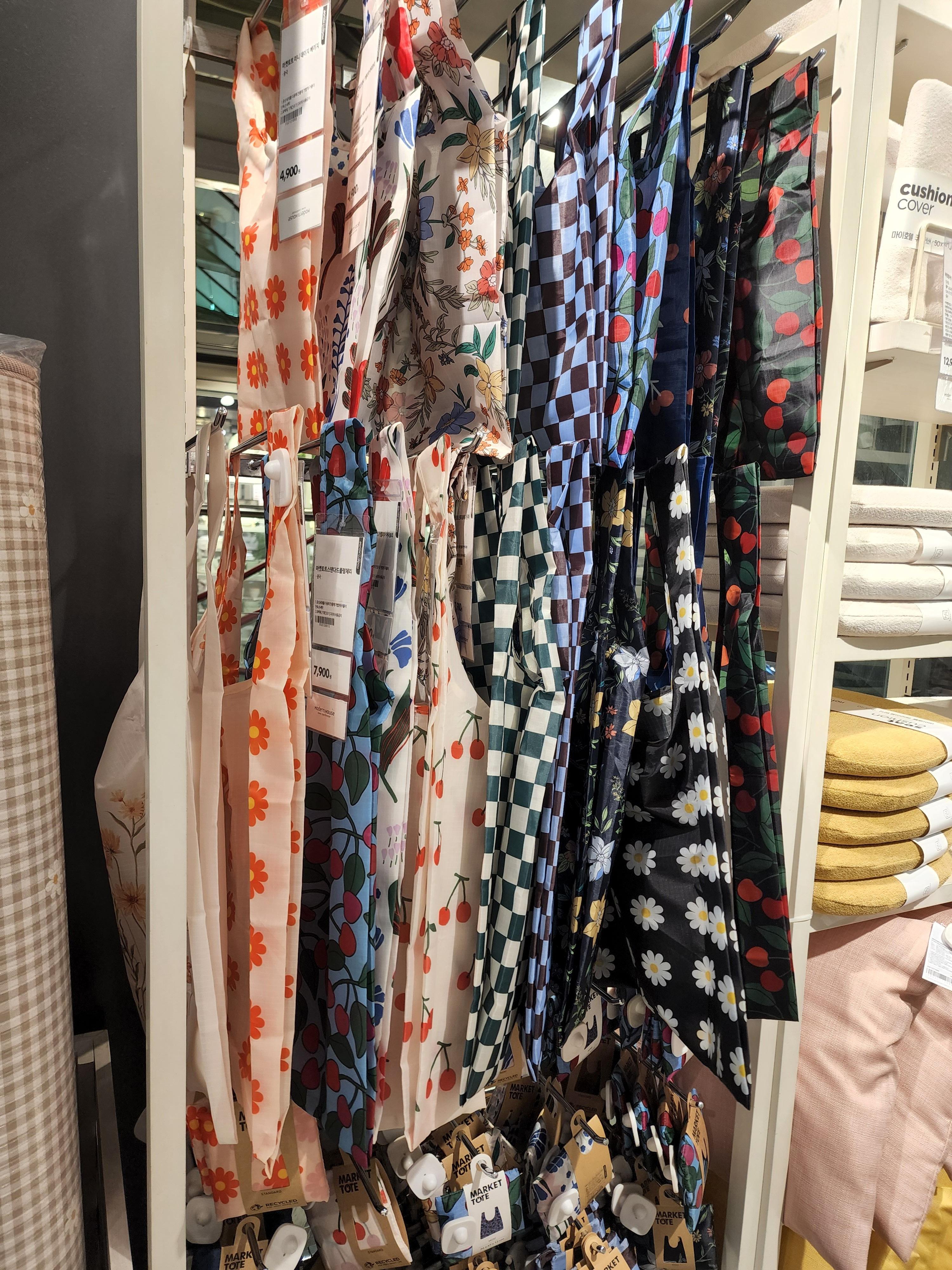 이렇게 그릇들을 보고 나서 다른 것들도 구경했다. 아래는 장바구니인데 2가지 크기에 무늬도 너무 마음에 들었다. 내가 장을 자주 봤으면 하나 샀을 듯👀