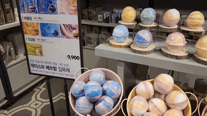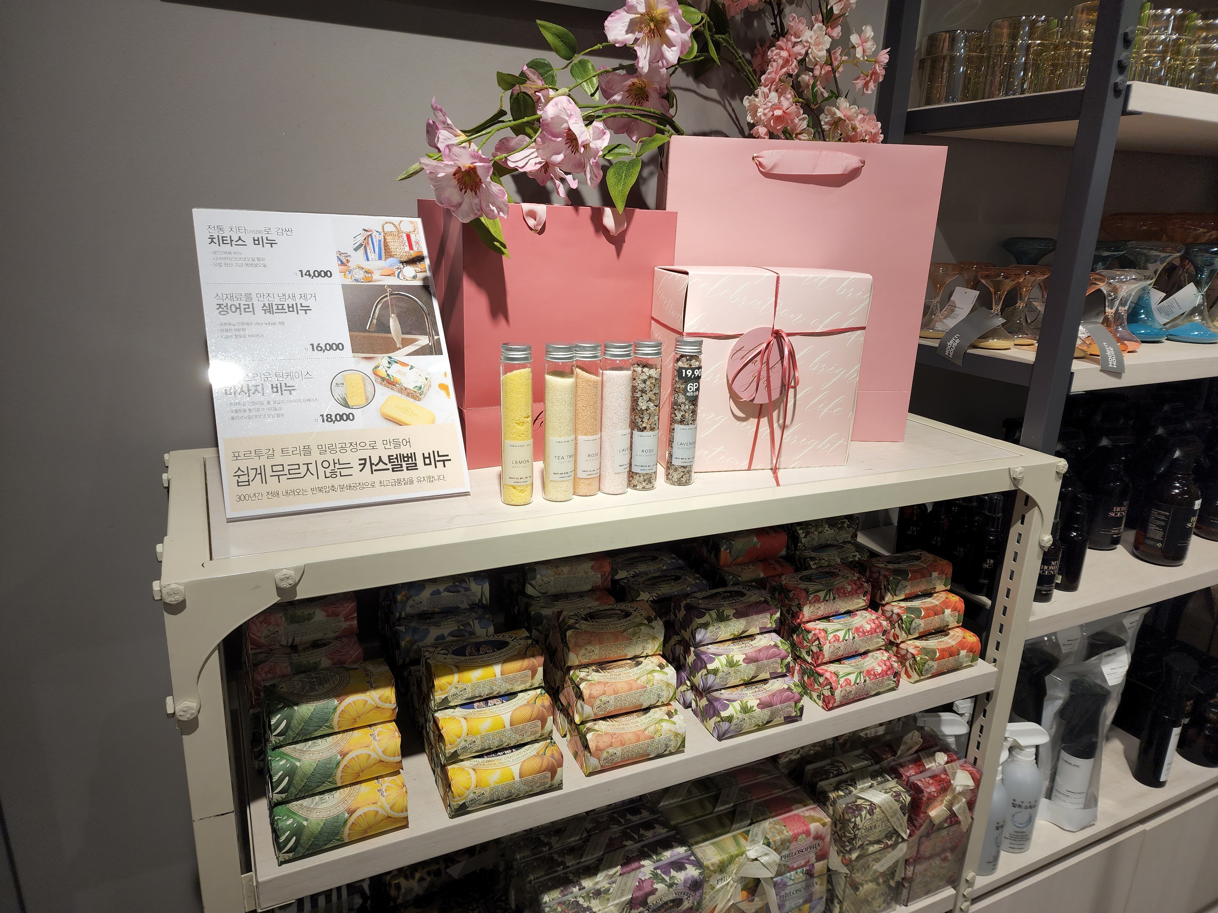 그 다음은 비누와 배스밤! 생각보다 종류도 다양하고 포장도 진짜 깔끔해서 이 코너 자체가 집들이 선물로 다 제격이라는 생각이 들었다.